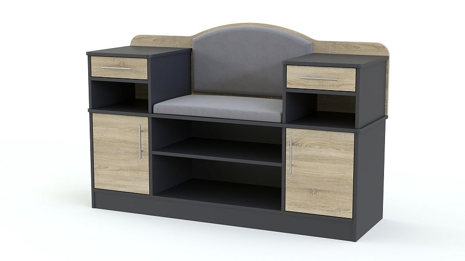 Обувница Дана BMS объединила продуманную систему хранения и комфортное сиденье. Многофункциональная модель оборудована открытыми обувными полками, распашными отделениями, выдвижными ящиками и нишами для хранения аксессуаров и мелочей. Спинка сиденья с мягкой обивкой в ткани элегантно скруглена. Выполненная в серо-бежевой гамме, обувница гармонично дополнит современные прихожие. Купить обувницу Дана BMS и эффективно использовать пространство вам поможет наш интернет-магазин.