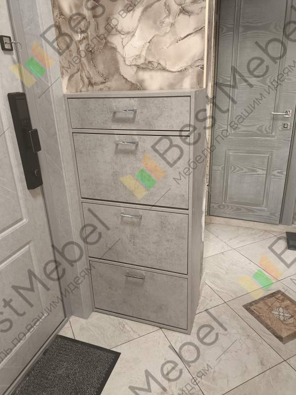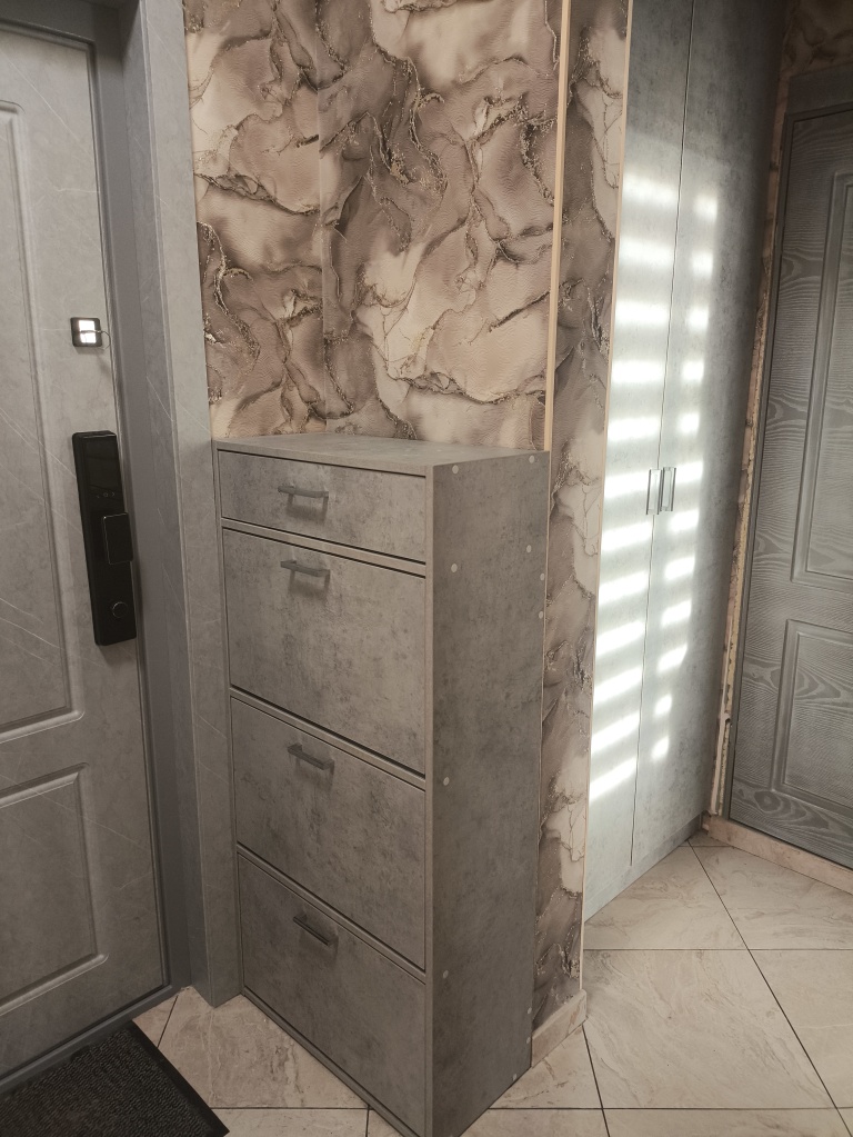 Обувница нам понравилась, сделали все быстро и по нашим размерам ( поэтому видимо есть небольшой зазор так как размеры нестандартные). Единственное что внутренняя фурнитура пластиковая и поэтому чуть-чуть хлипковата. А так большое спасибо, единственная фирма которая смогла сделать обувницу по индивидуальным размерам)