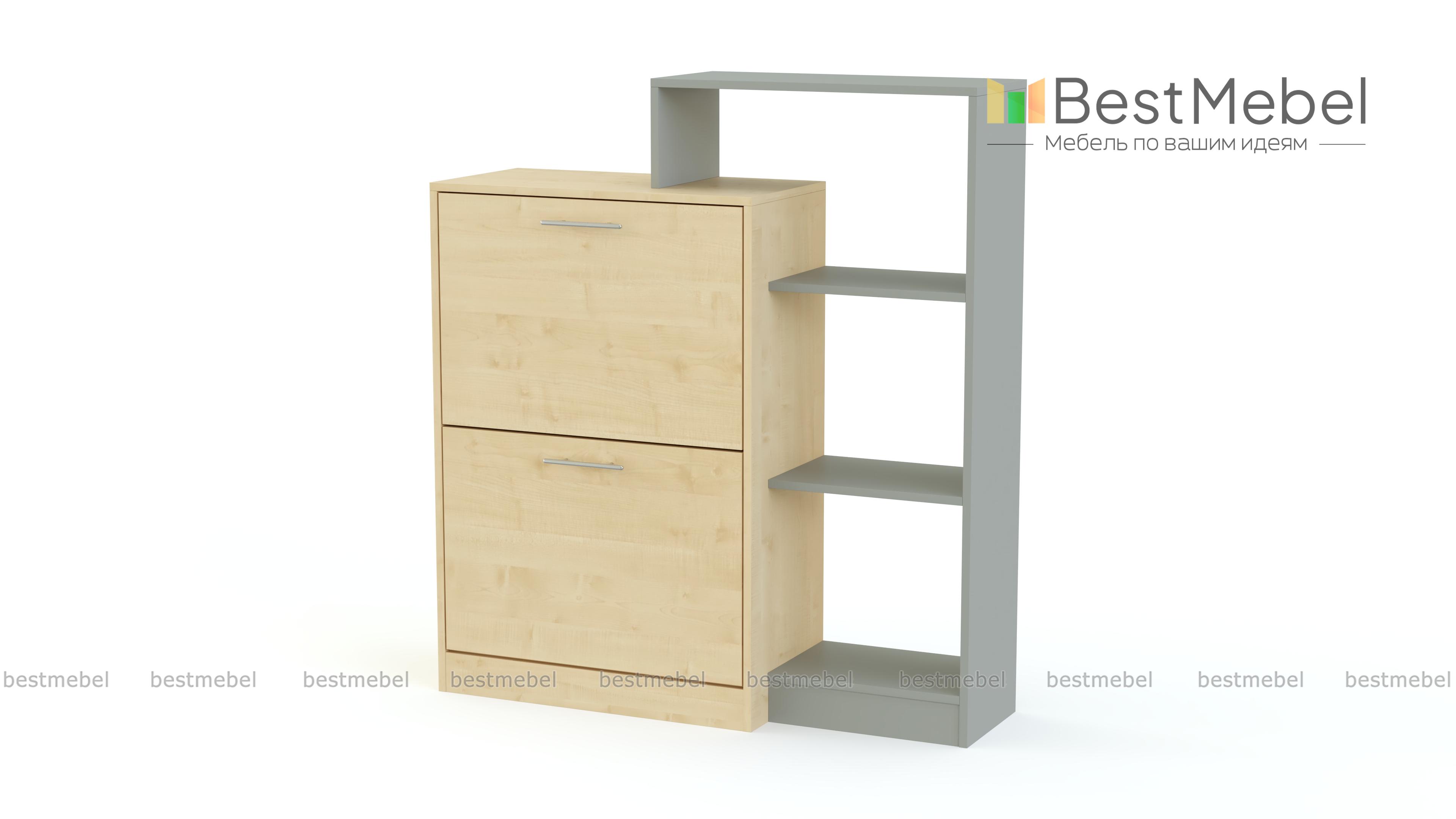 Обувница Лаф 4 BMS – практичная система хранения и оригинальный интерьерный акцент. Комбинированная модель объединила тумбу с двумя откидными обувными лотками и мини-стеллаж с открытыми полками, на которых будут всегда под рукой принадлежности по уходу, аксессуары и разнообразные бытовые мелочи. Визуальную легкость разноуровневой конструкции придает контрастное цветовое решение. Купить обувницу Лаф 4 BMS и обустроить стильную и комфортную входную зону вам поможет наш интернет-магазин.