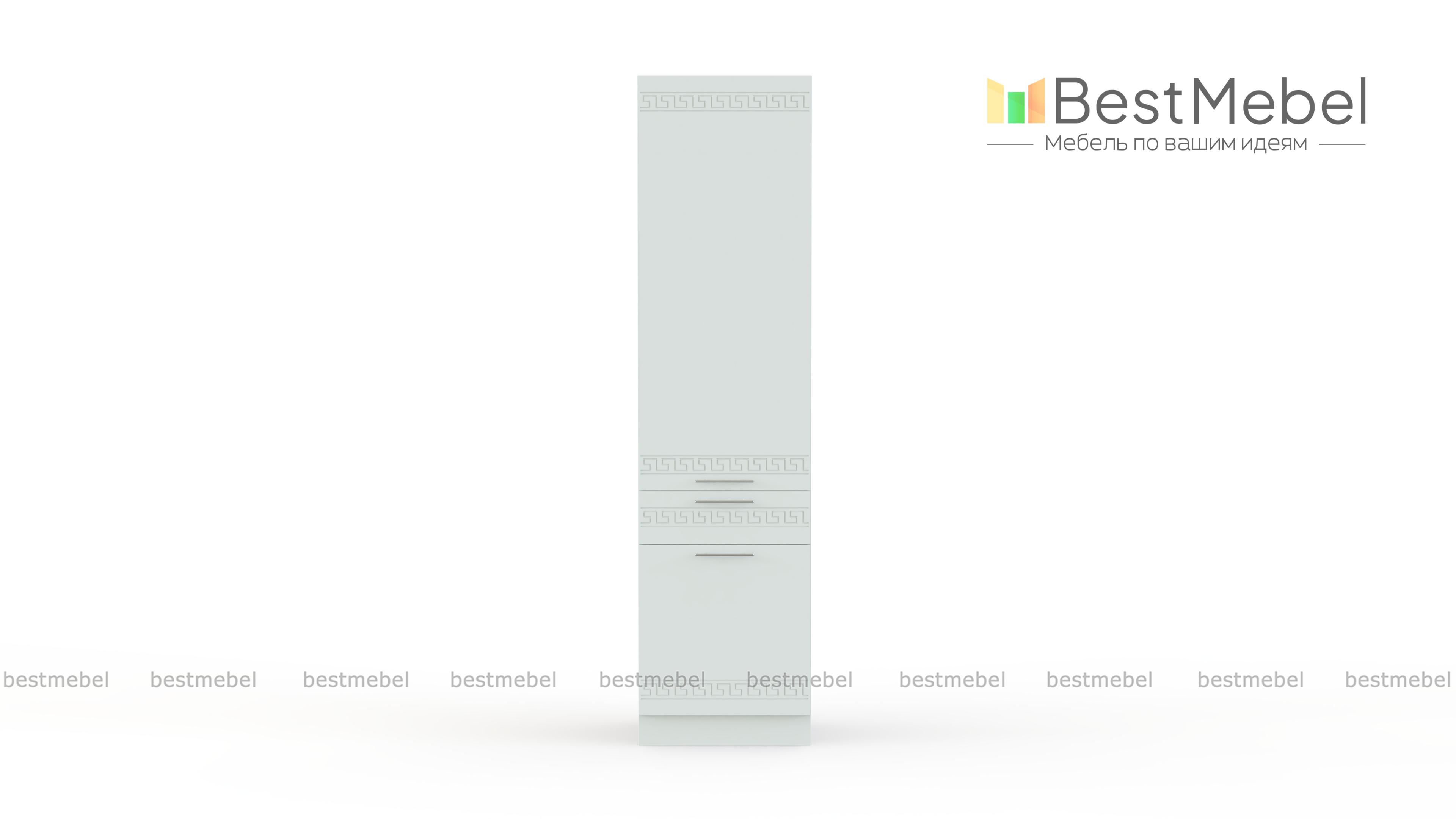 Шкаф-пенал 1 ящик Греция BMS отличается компактными размерами и вместительностью за счет высоты. Шкаф может использоваться как часть комплекта и самостоятельно в меблировке кухни. Помимо распашных отделений с полками под продукты и посуду, пенал оборудован выдвижным ящиком, удобным для хранения мелочей. Светлые фасады с этническим орнаментом и изящными ручками станут украшением домашнего интерьера. Купить шкаф-пенал 1 ящик Греция BMS по лучшей цене приглашаем в наш интернет-магазин.