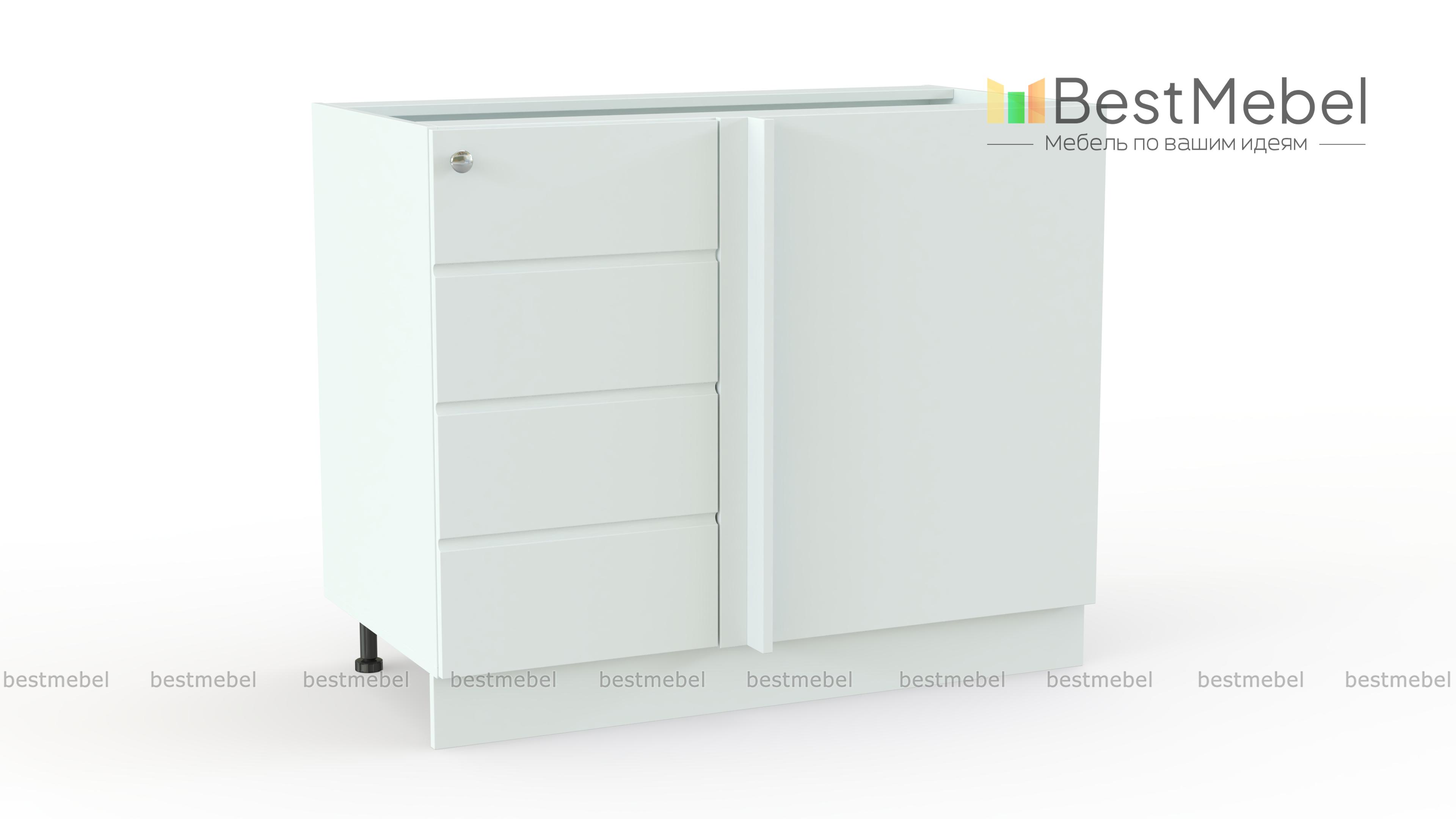 Тумба напольная угловая Квадро BMS предназначена для стыковки боковых модулей кухонного комплекта. Прямая модель с фронтальной стороны оборудована глухой стенкой и распашной дверцей. Внутреннее отделение отличается вместительностью и подходит для хранения габаритных предметов – кухонной утвари, продуктовых запасов или бытовой химии. Гармонично впишется в ряд из элементов серии фасад белого оттенка с характерной круглой ручкой. Купить тумбу напольную угловую Квадро BMS приглашаем недорого в наш интернет-магазин.