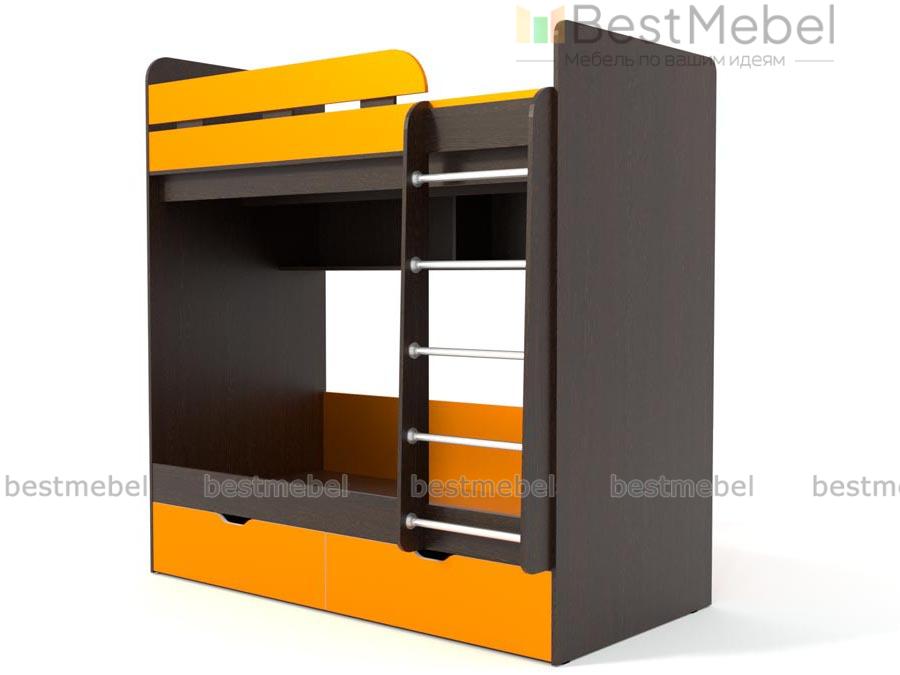 Двухъярусная кровать Белла 5 BMS – удобный и функциональный комплект для детской. Выполненный в современном стиле, он оборудован всем необходимым для комфортного сна. Спальное место второго яруса ограждено высоким, скругленным бортиком, на первый ярус ведет лестница с металлическими перекладинами. Между ярусами – просторная открытая полка для книг и игрушек. Купить двухъярусную кровать Белла 5 BMS в расцветке для мальчика или девочки вы сможете в нашем интернет-магазине.