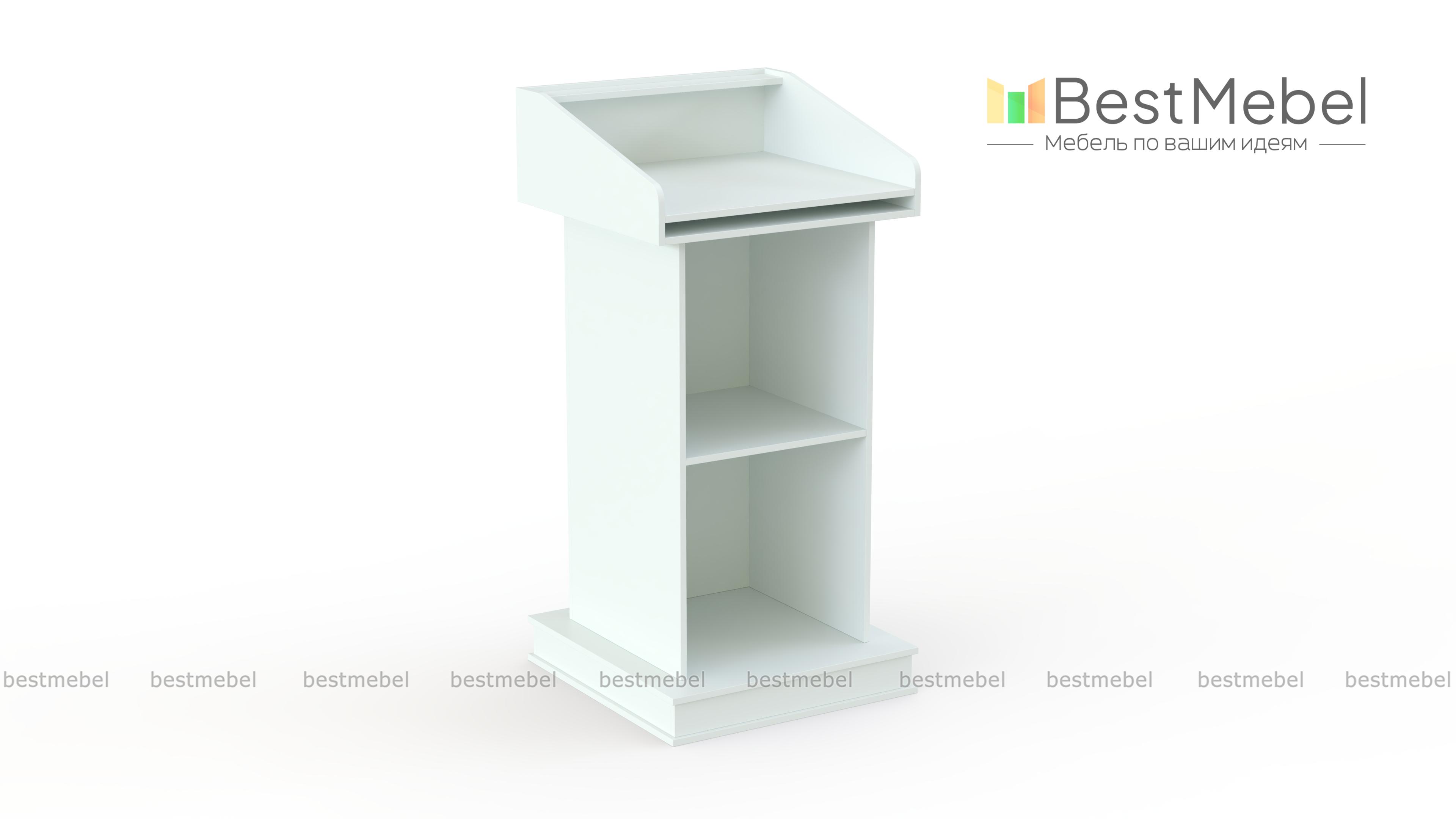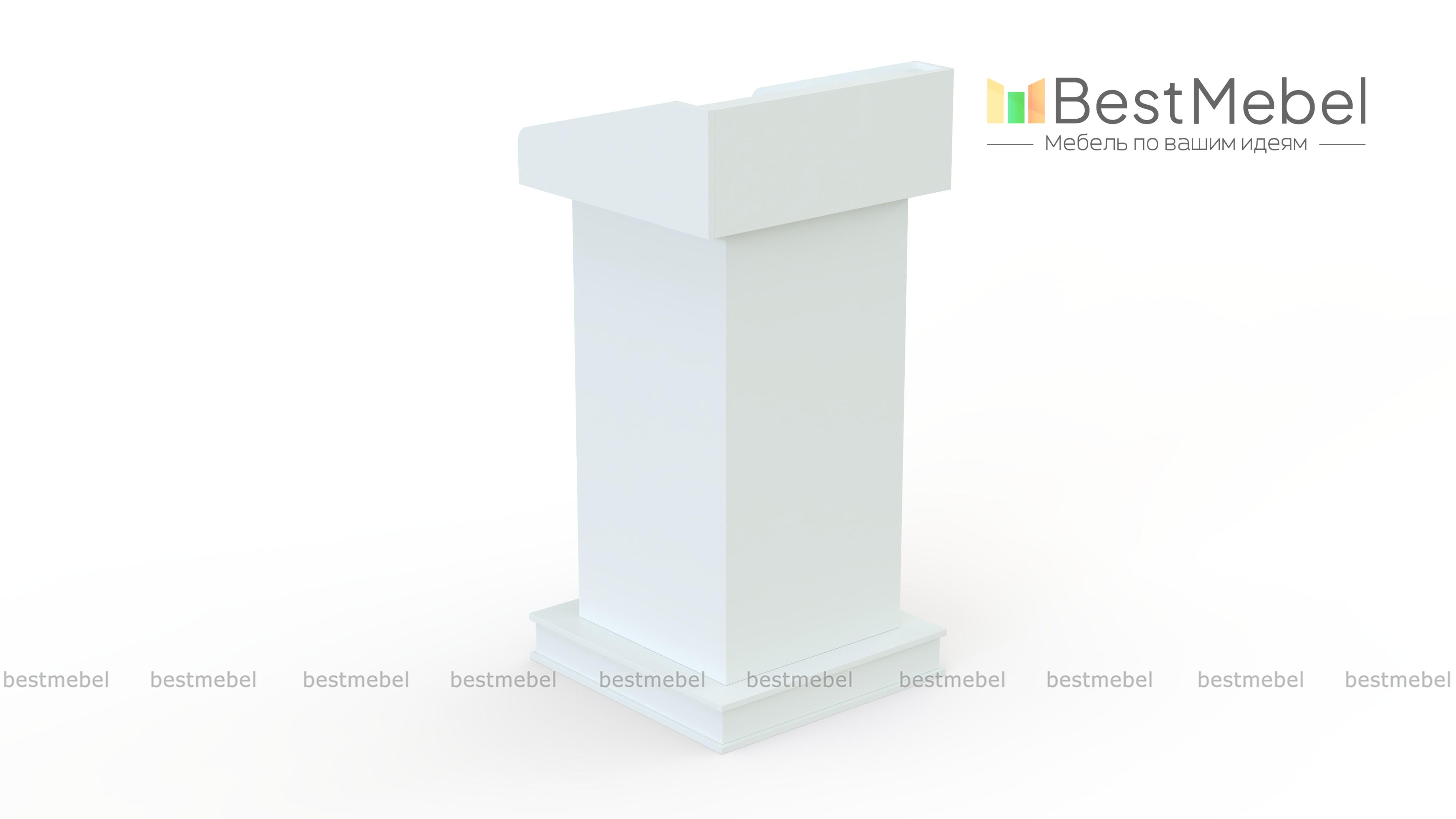 Массивная трибуна 53/1 BMS, выполненная в универсальных белых тонах, прекрасно подходит для проведения официальных мероприятий. Солидная конструкция на высоком подиумном основании с декоративными элементами будет органично смотреться в актовом зале или конференц-зале. Для комфорта выступающего трибуна оборудована просторной прямой столешницей с высокими, безопасно скругленными бортиками, которые защитят документы от падения. Купить Массивную трибуну 53/1 BMS приглашаем в наш интернет-магазин по лучшей цене.