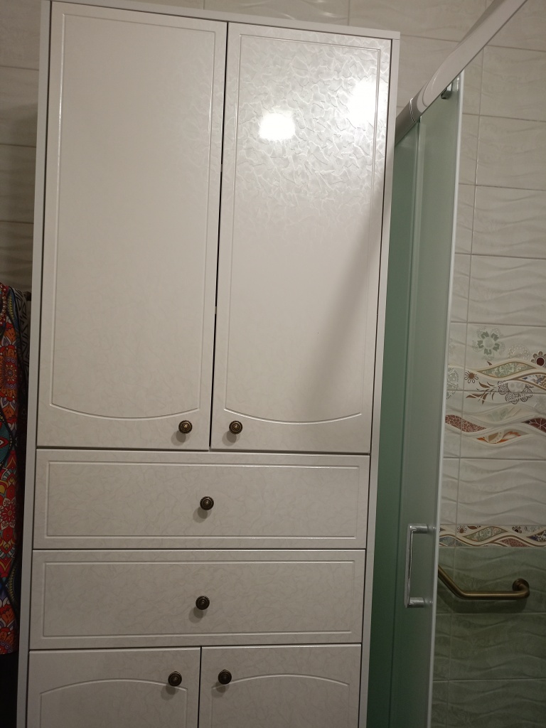 Шкаф удобный, вместительный, подошел по цвету. К качеству изготовления претензий нет.