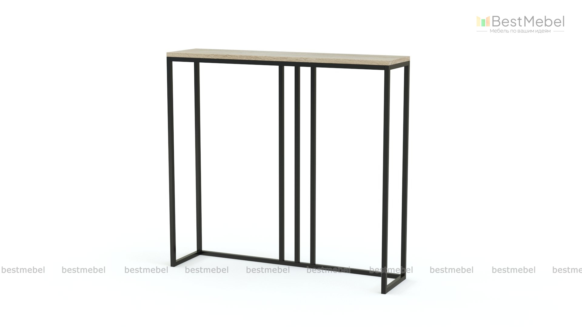Консольный стол Мартин 4 BMS на металлическом основании с декоративными перекладинами прекрасно вписывается в узкие коридоры, ниши, небольшие комнаты. Элегантная консоль в стиле лофт прекрасно комбинируется с навесными зеркалами разных дизайнов. На узкой столешнице с древесным рисунком разместятся интерьерные украшения, уютный светильник и необходимые под рукой мелочи.