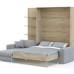 Шкаф-кровать Нью-2 BMS поможет создать актуальный и эргономичный интерьер даже в небольшом помещении. Многофункциональная композиция включает в себя просторный яркий диван, дополненный приставным пуфом, и шкаф с открытыми книжными полками и модулем-трансформером. При необходимости комфортная зона отдыха легко превращается в спальное место с помощью надежного вертикального механизма подъема. Купить шкаф-кровать Нью-2 BMS приглашаем в наш интернет-магазин, подобрав оптимальное цветовое решение.