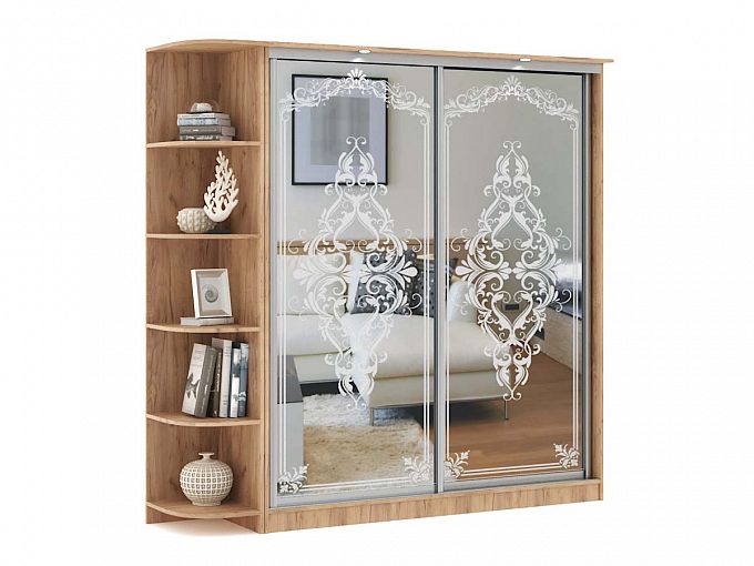 Шкаф-купе sk-044 BMS – многофункциональная модель, уместная в интерьере спальни, гостиной или прихожей. Двухдверный шкаф, оборудованный платяным отделением со штангой и верхней полкой, дополнен торцевым радиусным стеллажом. Зеркальный фасад с изящным пескоструйным рисунком станет украшением интерьера, а встроенная в козырек подсветка создаст атмосферу уюта и поможет быстро найти нужную вещь. Купить шкаф-купе sk-044 BMS с выбором необходимых размеров и цвета приглашаем в наш интернет-магазин.