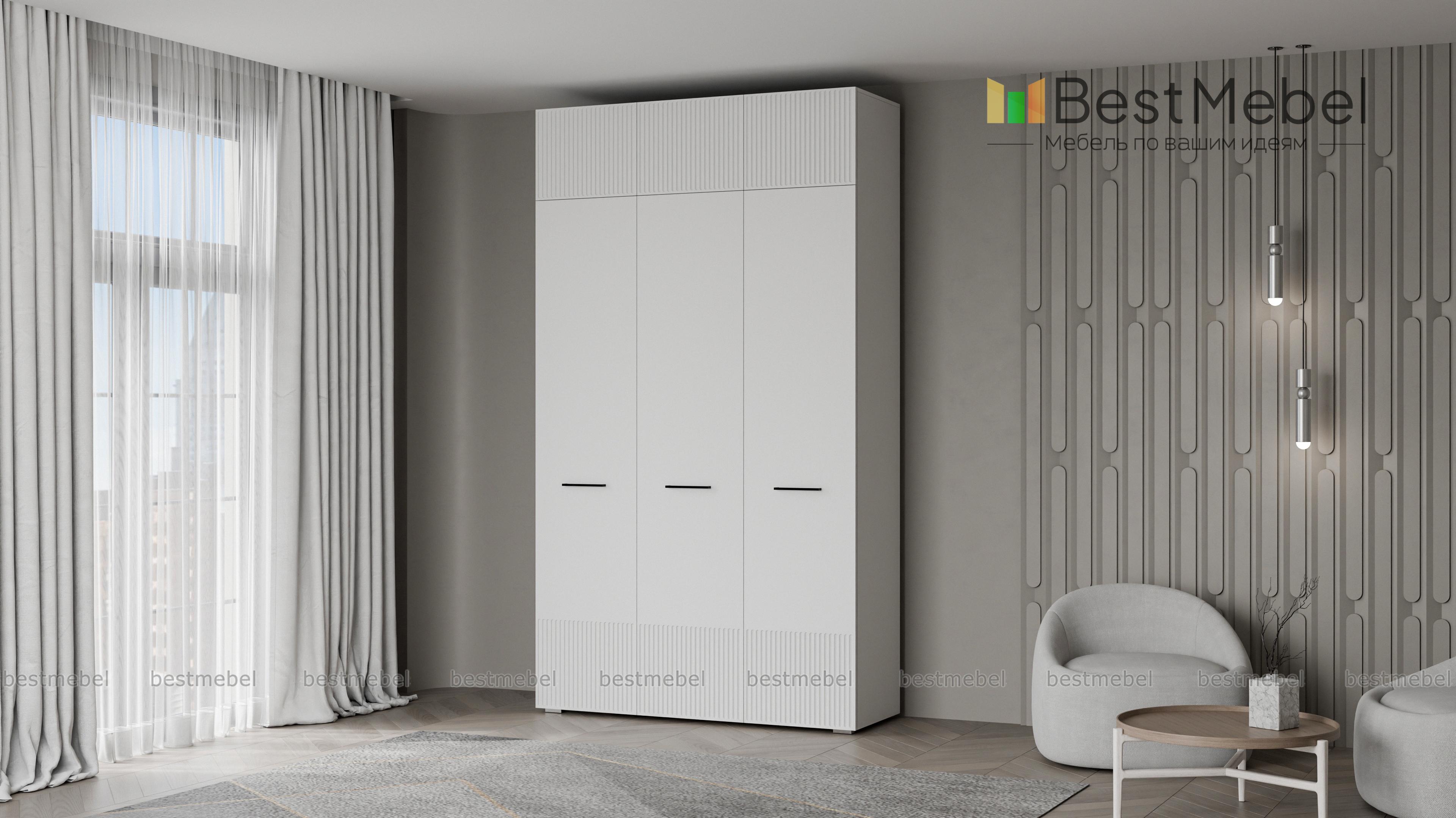 Шкаф распашной Декарт 9 BMS выполнен в современном классическом стиле. Нижняя часть фасада и дверцы антресоли украшены лаконичным стильным рельефом, в роли акцента выступают поперечные ручки-скобы. Платяное отделение справа и ряд бельевых полок слева — оптимально для хранения базового гардероба в спальне, детской комнате или прихожей. Купить шкаф распашной Декарт 9 BMS приглашаем в наш интернет-магазин с возможностью выбора габаритов, цвета и фурнитуры.