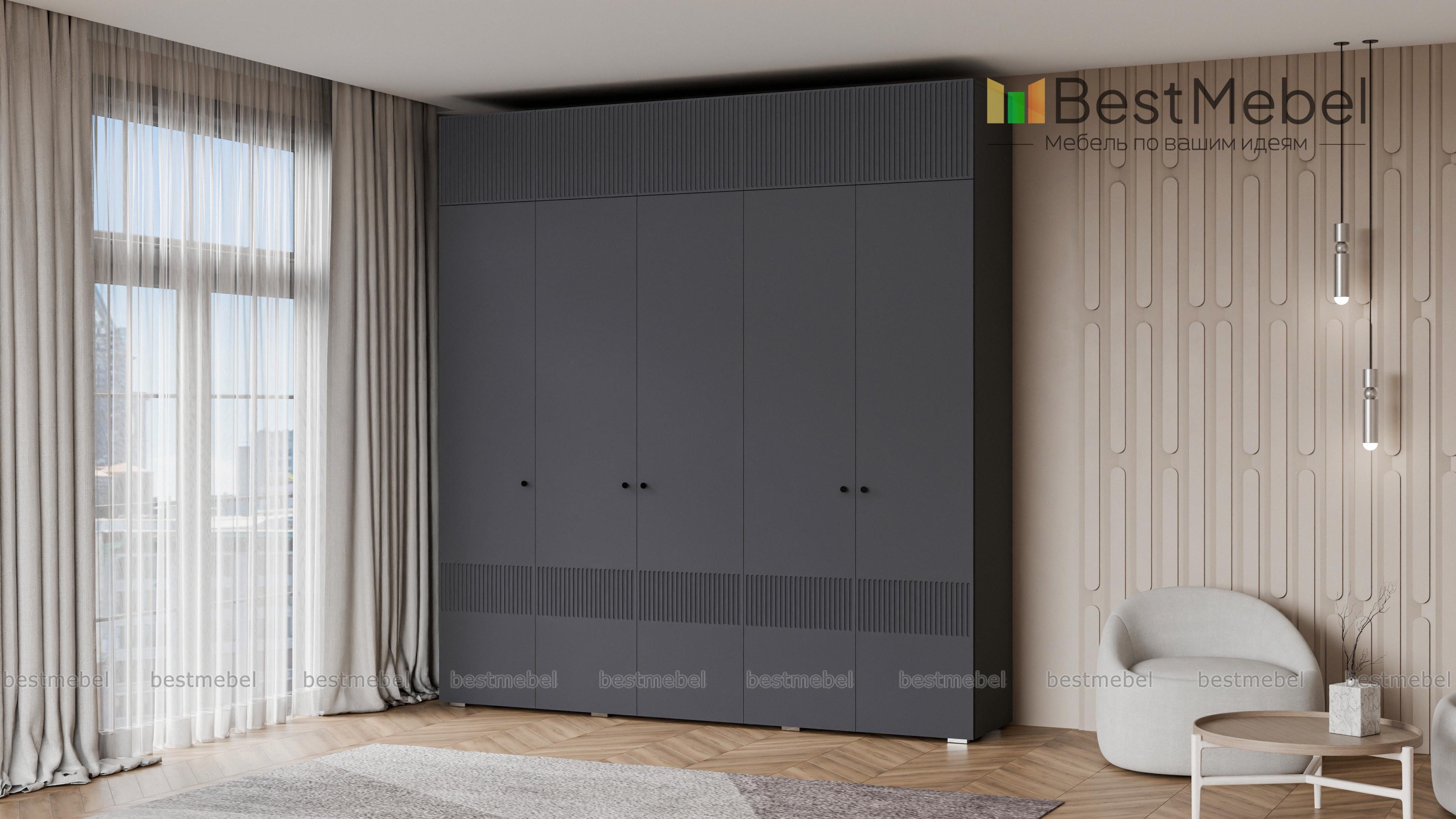 Шкаф распашной Джосс 11 BMS с антресолью — практичное и эстетическое решение для вашего дома. Пространство будет занято до потолка — значит, появится больше места для хранения как повседневного, так и сезонного гардероба. Внутри пятидверного шкафа располагаются две штанги и ряд бельевых полок, а сплошной фасад яркого аквамаринового цвета декорирован стильным рельефом. Купить шкаф распашной Джосс 11 BMS вы сможете на сайте нашего интернет-магазина в необходимом размере и любых оттенках из каталога.