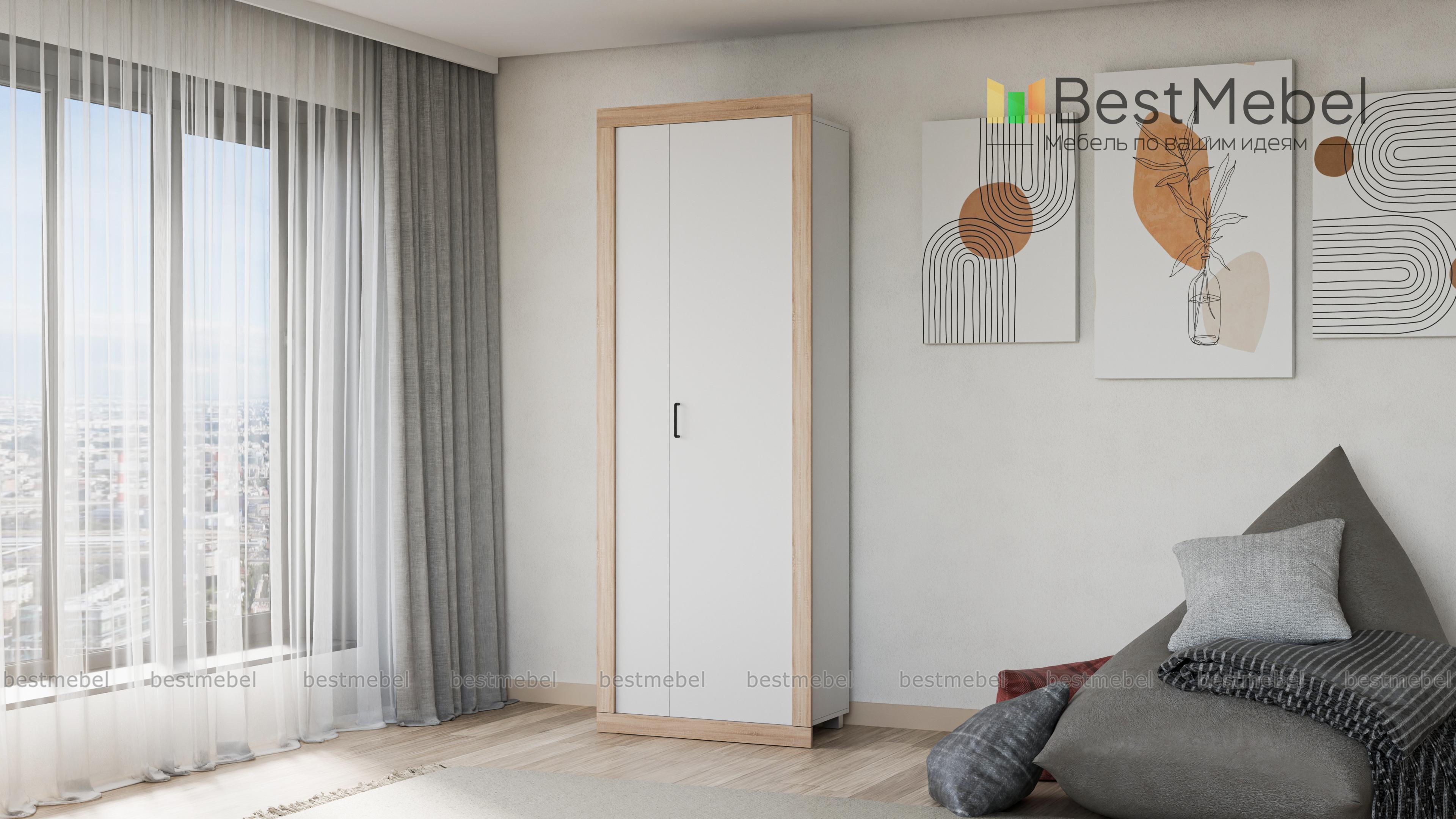 Шкаф Агамемнон BMS гармонично сочетает классические и современные черты в оформлении. Простая и надежная модель выполнена в модном сочетании светлых оттенков под массив дуба и белого. За распашными дверцами расположено просторное отделение со штангой для одежды и верхняя полка для головных уборов и аксессуаров. Компактный, но вместительный, шкаф станет практичным дополнением интерьера спальни, гостиной или прихожей. Купить шкаф Агамемнон BMS недорого вы всегда сможете в нашем интернет-магазине.