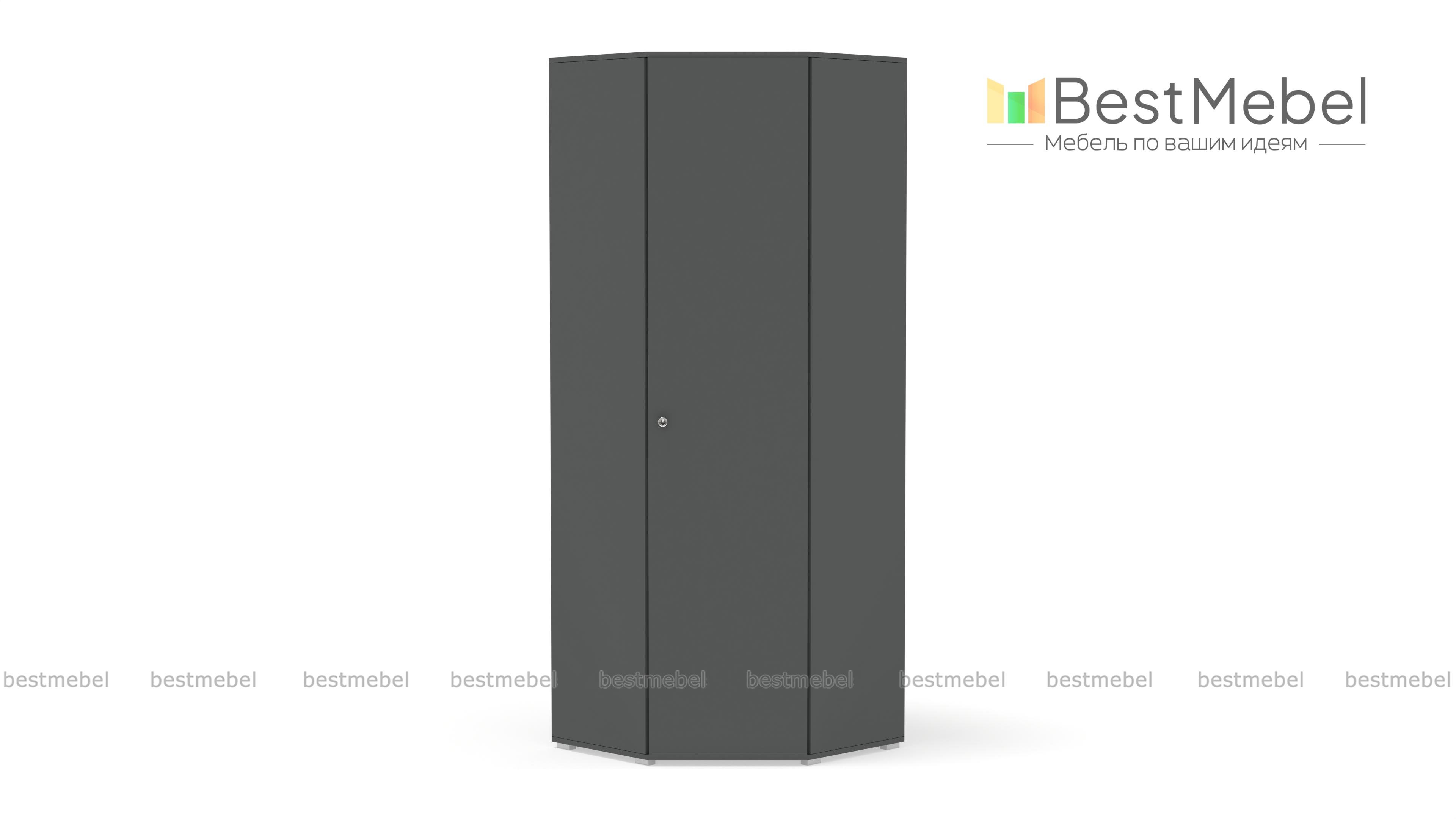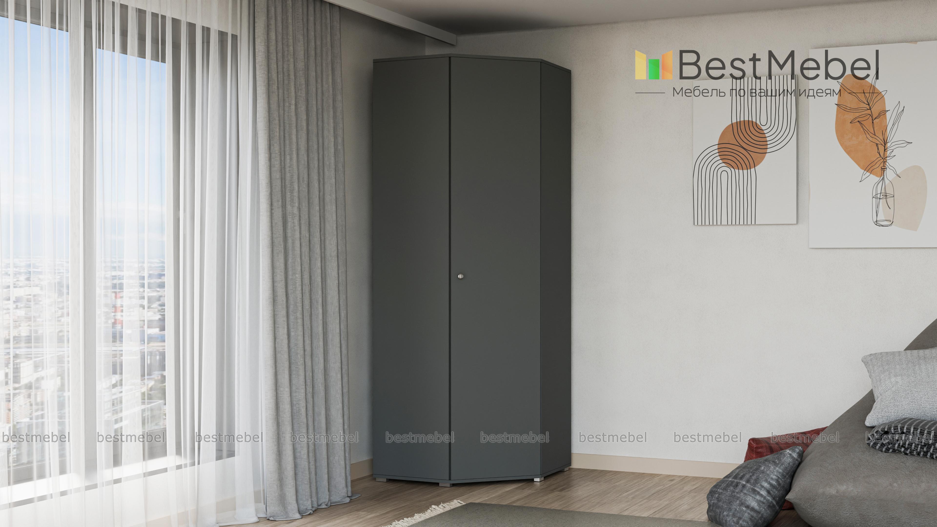 Шкаф угловой Квадро BMS разработан для тех, кто предпочитает строгий современный стиль классическому. Отличительной чертой являются чёткие линии и прямые углы. Модель выполнена в едином цвете. Украсит интерьер Вашей комнаты, добавит комфорт и функциональность. Можно располагать в спальне либо гостиной. Дверка оборудована стильной металлической ручкой круглой формы. Внутреннее пространство может быть укомплектовано многочисленными полками для разных вещей, вкладной штангой для одежды.