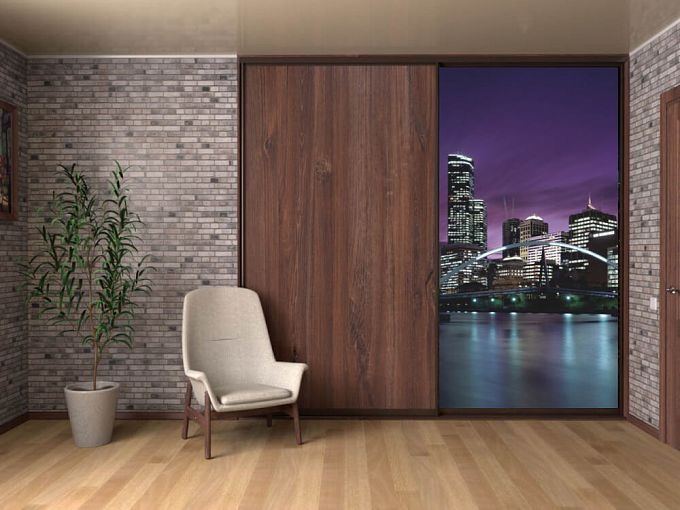 Шкаф-купе 4157 BMS – отличное решение для интерьера спальни, молодежной комнаты, просторной прихожей. В оформлении фасадов двухдверной модели гармонично сочетаются насыщенные оттенки под древесный массив и панорамная фотопечать с изображением города в бежевых тонах. Спокойная цветовая гамма и респектабельный дизайн помогут создать комфортную для работы и отдыха атмосферу. Практичная конструкция сэкономит полезную площадь и компактно разместит предметы гардероба и домашний текстиль. Купить Шкаф-купе 4157 BMS приглашаем в наш интернет-магазин.
