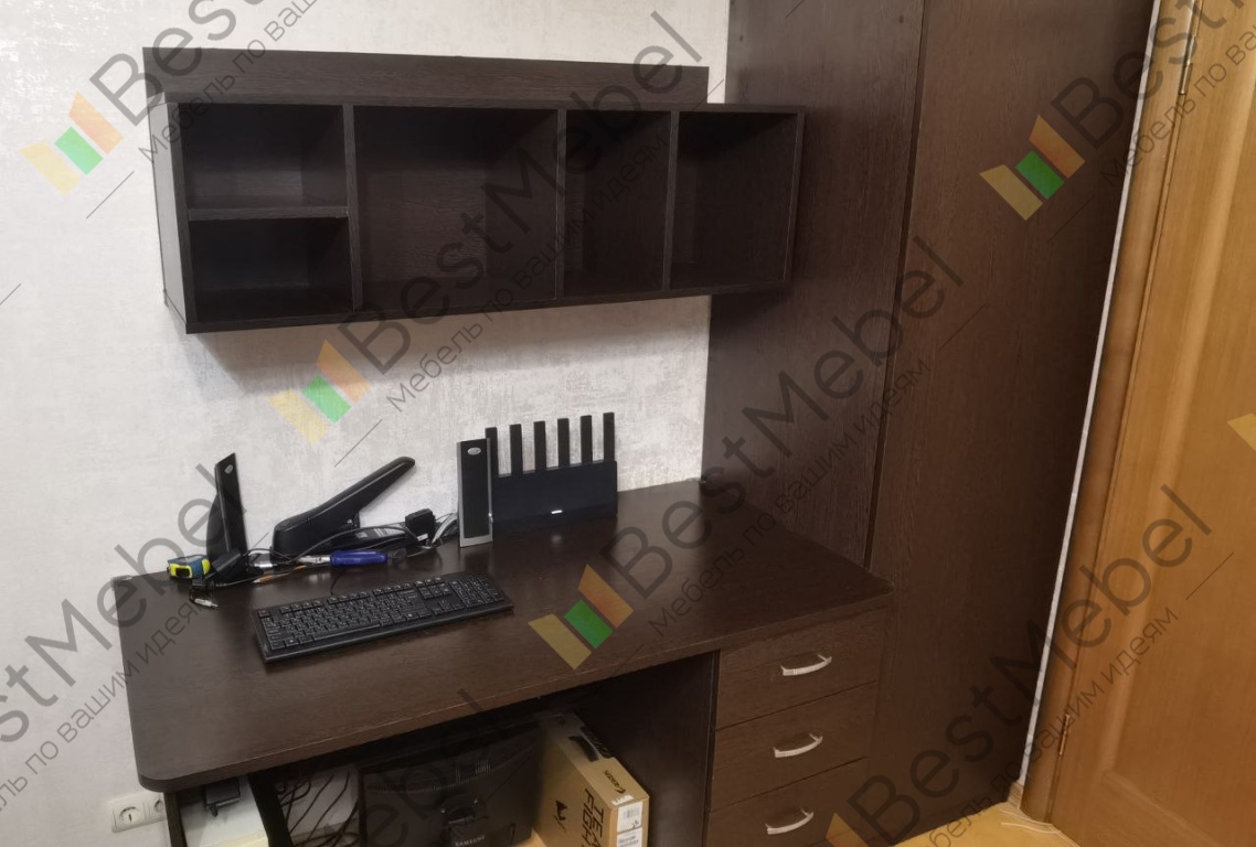 Полка замечательная. Сделали с несколькими изменениями по индивидуальному запросу на основе этой модели, цена выросла не сильно. Повесил, доволен просто до жути :) И вообще, BestMebel -- исключительные молодцы! Мебель качественная, точность изготовления выше всяких похвал, собирается, как конструктор Lego! Ну и вторая фотка -- немного мебели от Bestmebel, которую я приобрел за последние полтора месяца (стол, шкаф, полка).