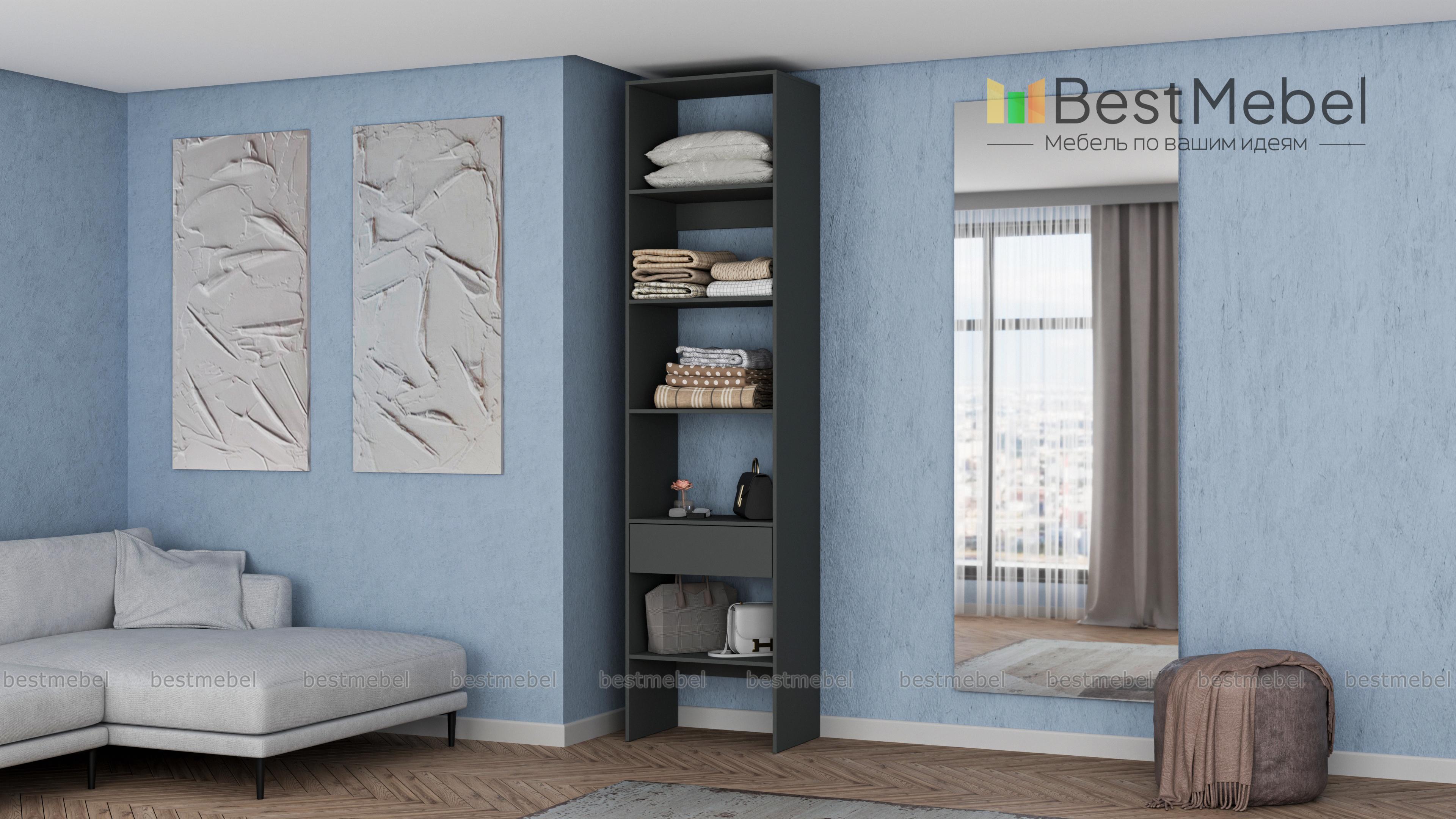 Стеллаж для одежды Мирта 34 BMS можно установить в спальне, прихожей или гардеробной. Компактные размеры конструкции и лаконичный современный дизайн прекрасно подходят для малометражных помещений. Четыре полки и выдвижной ящик позволяют вам разместить на удобной высоте обувь, одежду в сложенном виде, контейнеры и корзины для хранения. Купить стеллаж для одежды Мирта 34 BMS с изготовлением по индивидуальным размерам вы сможете недорого в нашем интернет-магазине.