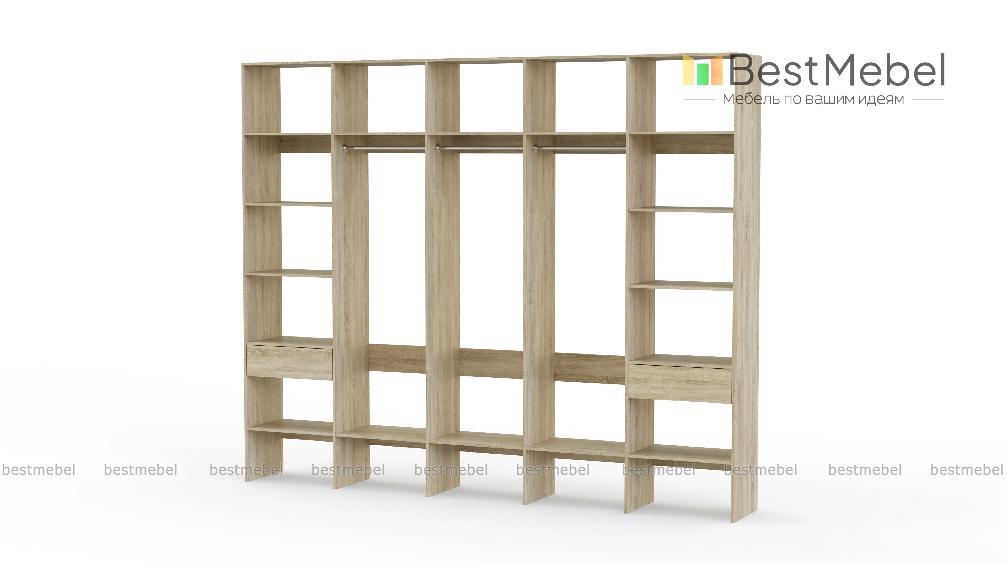Стеллаж для одежды Мирта 69 BMS — это полноценная система хранения для просторной гардеробной. Три штанги в центре, полки по периметру и два выдвижных отделения обеспечивают быстрый доступ ко всем вещам: от сезонной одежды до мелких аксессуаров и средств ухода. Благодаря универсальному дизайну стеллаж гармонично вписывается в разные по стилю интерьеры. Купить стеллаж для одежды Мирта 69 BMS с индивидуальным подбором цвета и размеров вы сможете на сайте нашего интернет-магазина.