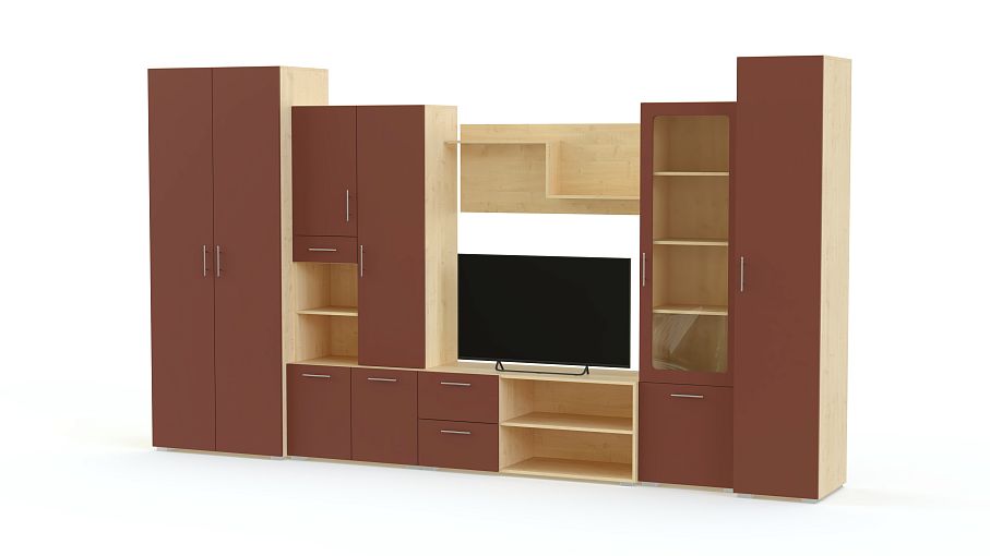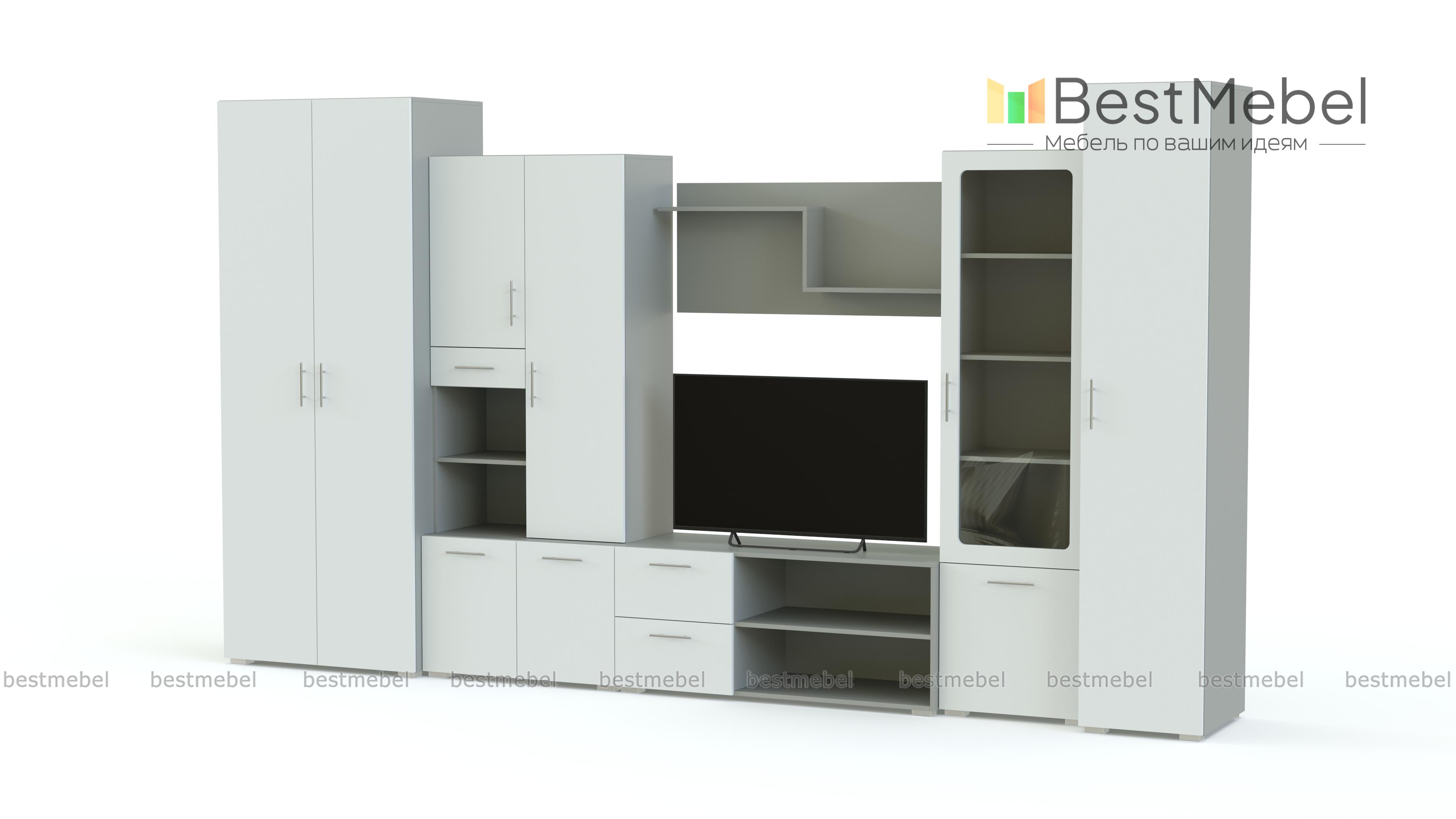 Стенка Неко 3 BMS поможет оборудовать просторную гостиную в современном стиле. Крупногабаритная конструкция отличается лаконичностью дизайна, смелым цветовым решением и оборудована разными типами отделений. В комплекте двухдверный платяной шкаф, пенал, тумба под ТВ, витрина, открытая антресольная полка и комбинированный шкафчик. Стенка с фасадами матового оттенка сделает интерьер запоминающимся и компактно разместит все необходимое. Купить стенку Неко 3 BMS по демократичной цене приглашаем в наш интернет-магазин.