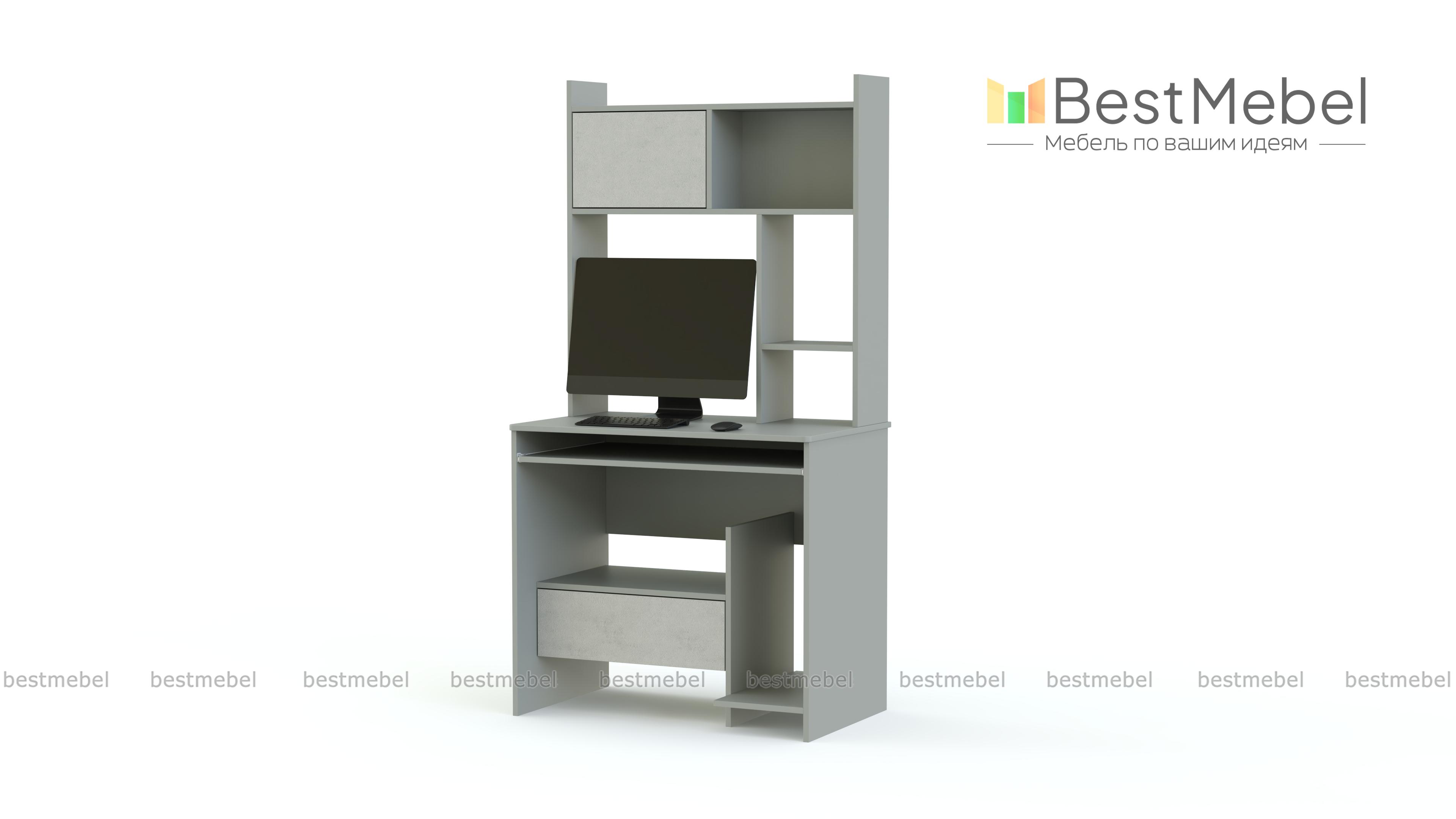 Компактная, но функциональная и вместительная модель МБ-9.1 BMS отлично подойдет для работы за компьютером. Современный дизайн органично дополнит подростковую комнату и создаст позитивное настроение. Стол оборудован выдвижной полочкой для клавиатуры, подставкой под системный блок и выдвижным ящиком. Надстройка – сочетание открытых полок с закрытым отделением. Яркие матовые фасады ящиков эффектны, просты в уходе и оснащены практичной системой открывания без ручек.