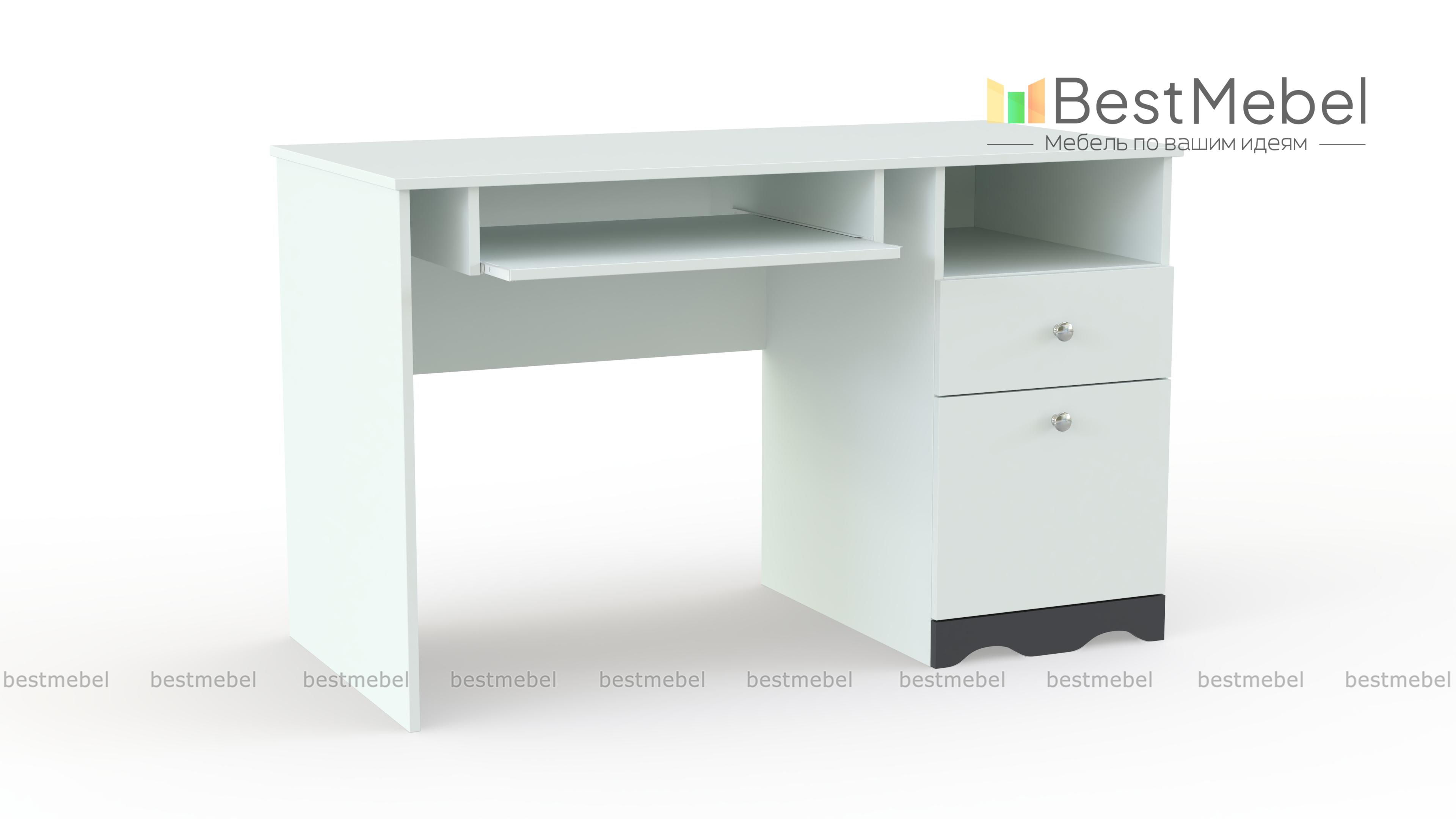 Письменный стол ИД.01.91а BMS выполнен с заботой к подрастающему поколению. Он оборудован вместительной тумбой, удобной столешницей и выкатной панелью для клавиатуры. Стол идеально впишется в интерьер детской комнаты, ведь здесь преобладают фигурные элементы, удобная фурнитура. Если подобрать к модели другое цветовое решение из ярких красок, то можно создать модель идеально подходящую в интерьер. Купить письменный стол ИД.01.91а BMS по низкой цене можете в нашем магазине.