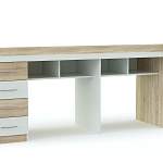 Стол для двоих детей Город 28 BMS поможет обустроить полноценную рабочую зону в интерьере молодежной комнаты. Современная модель в сочетании нейтрального белого и спокойных цветных вставок создаст в помещении комфортную атмосферу. Стол представляет собой сочетание просторной столешницы с ограничительными бортиками, которые уберегут мелкие предметы от падения, двух тумб с выдвижными ящиками, незаменимых для хранения канцелярских принадлежностей, и открытых полок. Купить стол для двоих детей Город 28 BMS вы сможете в нашем интернет-магазине.