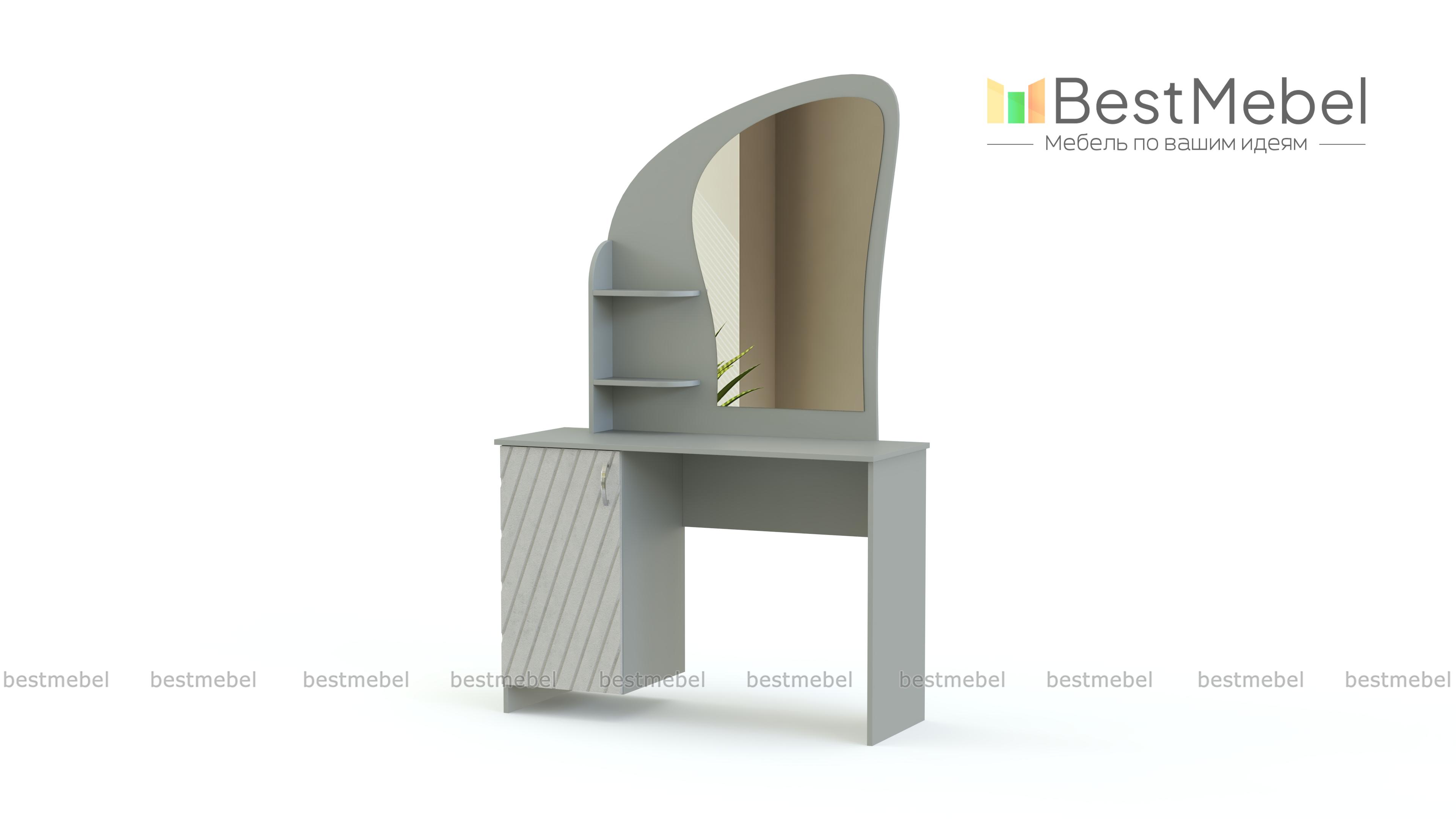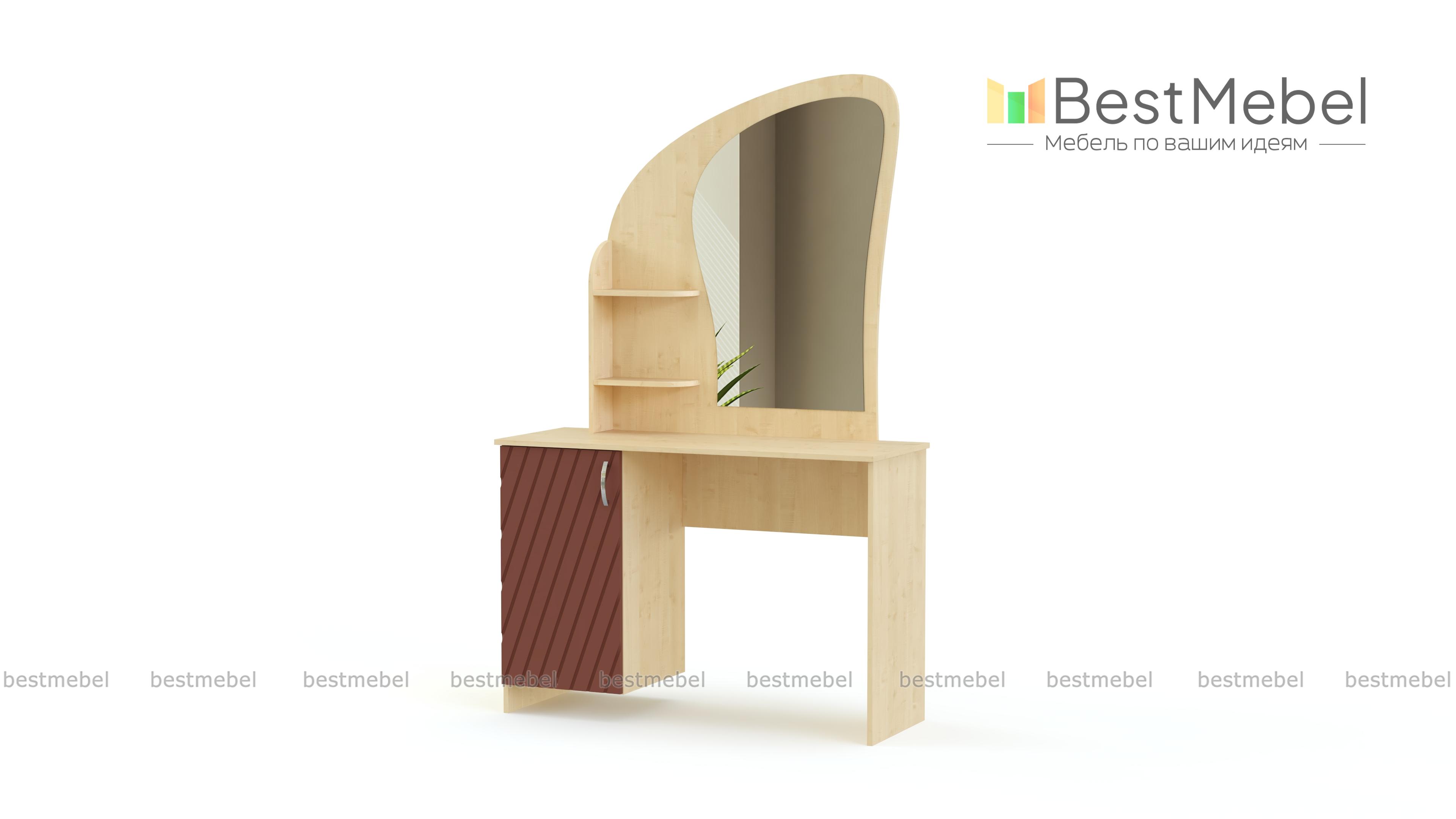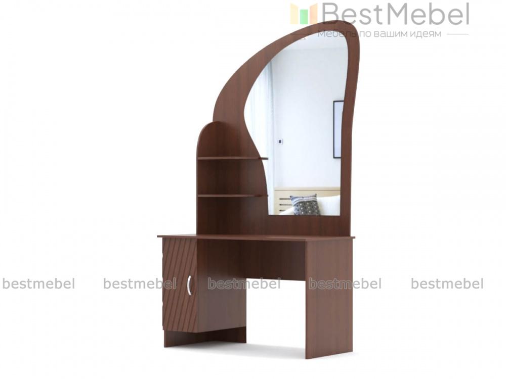 Трюмо Марьяна BMS станет функциональным украшением спального интерьера. Элегантное трюмо с элементами стиля модерн отличается компактными размерами и выполнено в насыщенных темных тонах. Модель оборудована эргономичной формы столешницей, распашной тумбой и скругленной надстройкой с фигурно вырезанным зеркалом и боковыми полочками для необходимых под рукой мелочей. Купить трюмо Марьяна BMS для комфортного ухода за собой вы сможете в нашем интернет-магазине по лучшей цене.