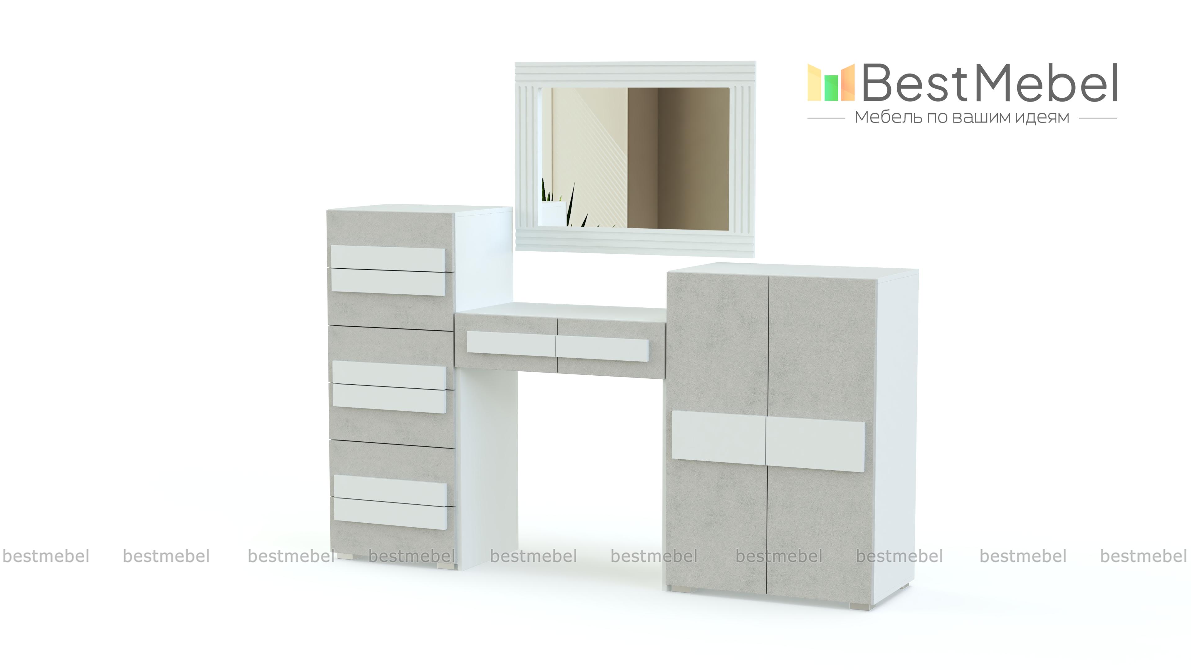 Туалетный стол Пресли 1 BMS – практичное дополнение и элемент дизайна современного спального интерьера. Эффектный геометричный столик выполнен в контрастном сочетании графитового оттенка и универсального белого. Модель оборудована всем необходимым для ухода за собой и хранения косметики, украшений и аксессуаров – двумя вместительными тумбами, столешницей, дополненной выдвижными ящиками, и зеркалом в широкой рамке. Купить туалетный стол Пресли 1 BMS по отличной цене вы сможете в нашем интернет-магазине.