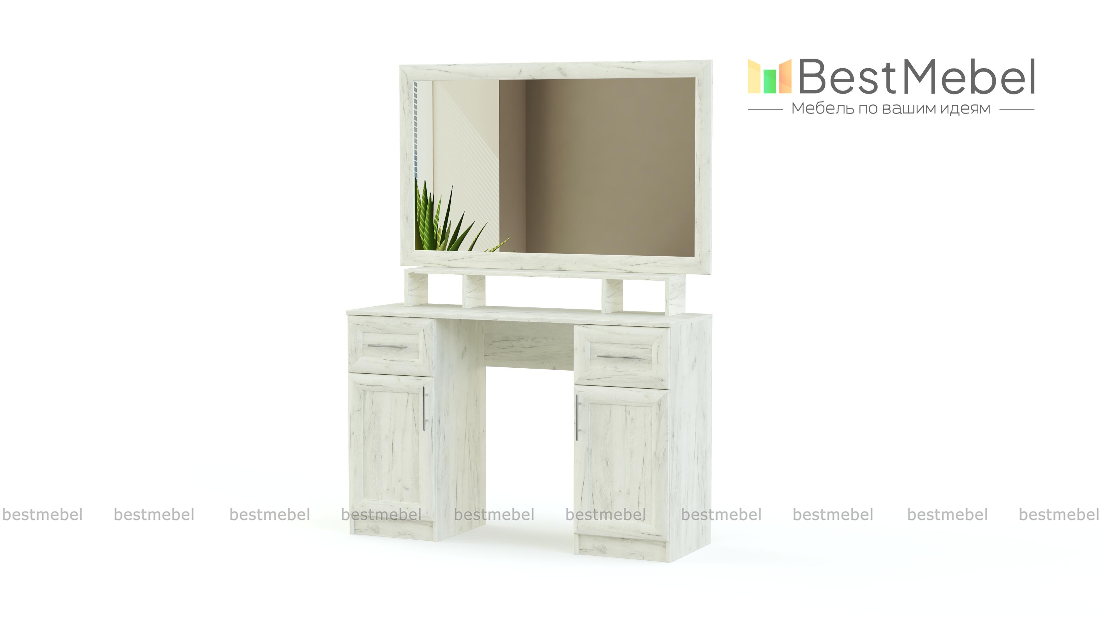 Туалетный столик Милена 8 BMS - комбинированная модель, которая объединила две вместительные тумбы с распашными дверцами и ящиками, большое навесное зеркало и открытую полку для предметов декора и косметических средств. Модель выполнена в универсальном бежевом древесном оттенке, благодаря которому, столик легко впишется в большинство классических интерьеров. А качественная фурнитура и износостойкие материалы гарантируют сохранение презентабельного внешнего вида на долгий срок. Купить недорого туалетный столик Милена 8 BMS приглашаем в наш интернет-магазин.