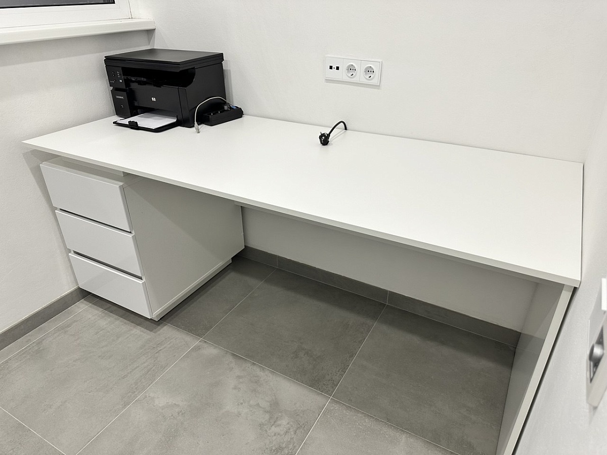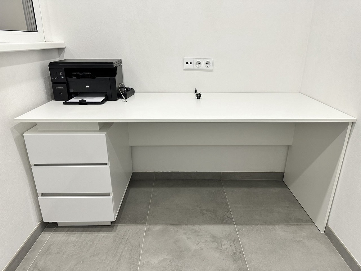 Стол получился функциональным, удобным, качественным. Делали по индивидуальным размерам, чтобы под ним мог проехать робот пылесос. Очень довольны. Спасибо!