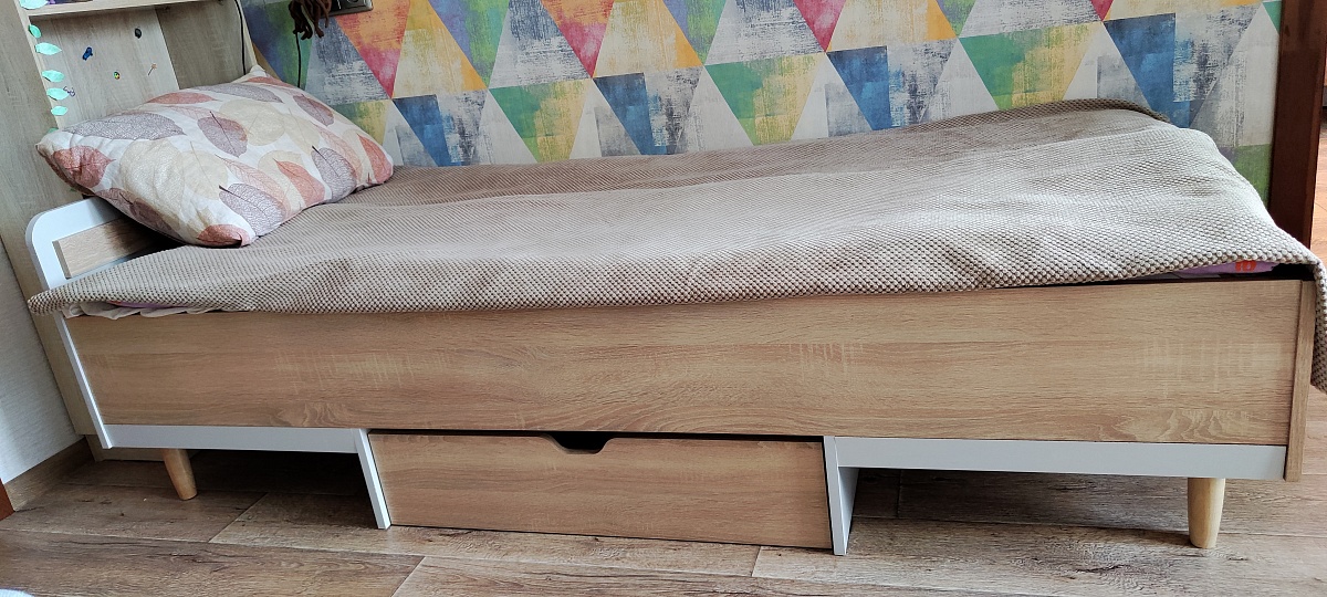 Заказ 00000293757, изделие Кровать Полло 15 BMS (850х600х1950). Подбирали кровать дочери 10 лет, остановились на этой. Кровать оправдала ожидания, дочка довольна. Спинку кровати делали ниже стандартной, так как за кроватью стоит стеллаж. Доставка была вовремя, всё обговорили заранее, по готовности кровати позвонили и ещё раз согласовали доставку. Инструкция по сборке не очень понятная, пришлось повозиться.