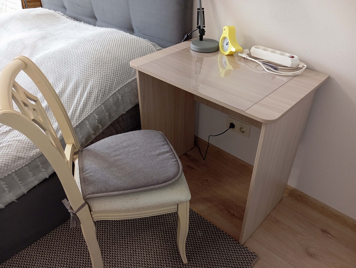 Заказ №891627 от 05.10.2023. Заказала такой столик в качестве прикроватного (выпить чашечку чая, померить давление и т.п.). Небольшой, лаконичный, удобный. Сделан качественно, лёгкая сборка. Цвет Ясень Шимо Светлый. Покупкой довольна, рекомендую. 00000522969 Письменный стол СПМ-08 BMS (750х750х500)