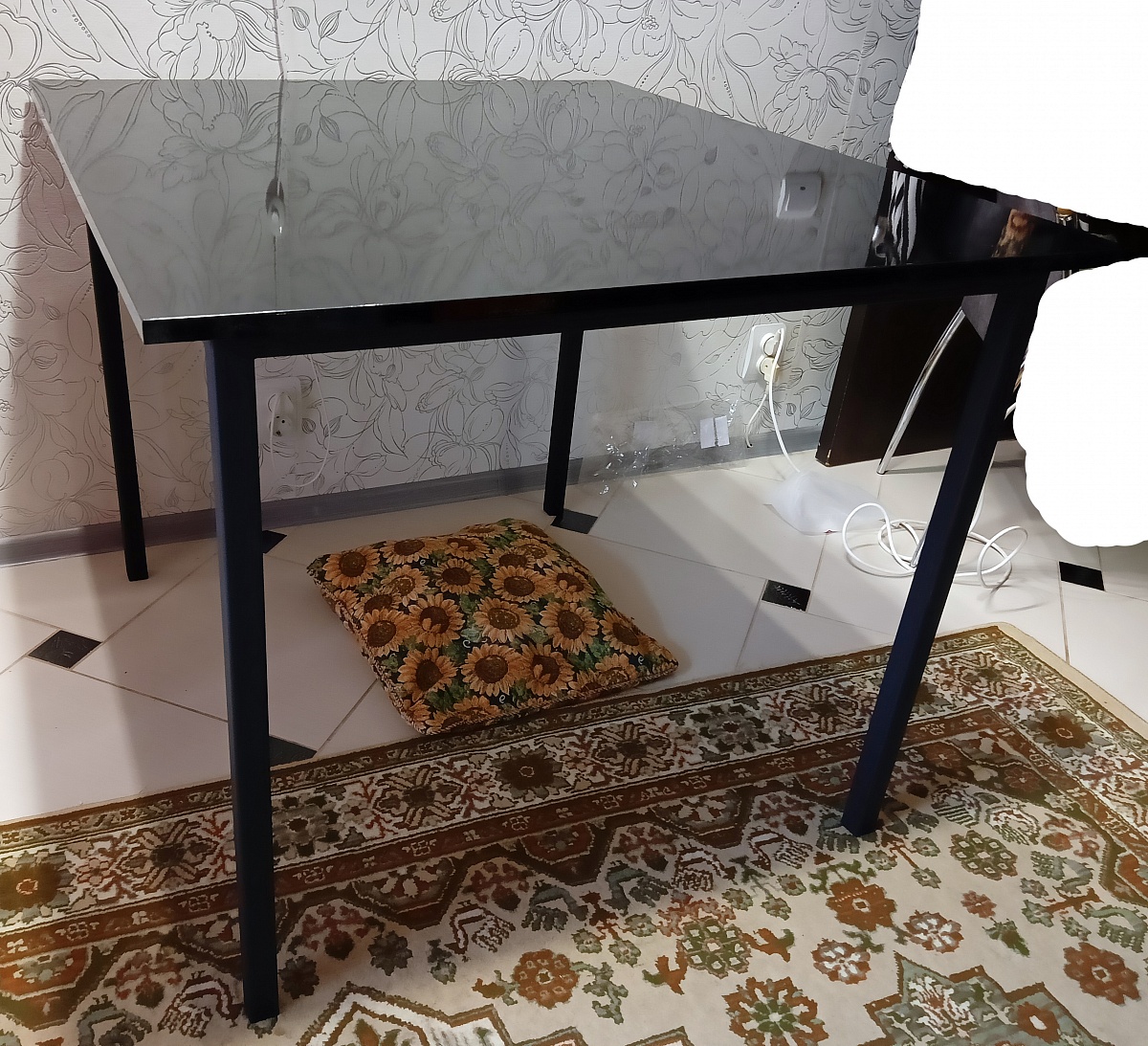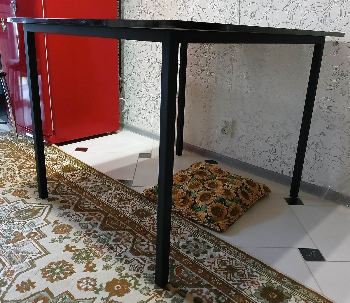 Заказ 00000769508. Отличный стол. Простой и достаточно дешёвый — то что я искал. Мне были нужны строго определённые размеры, поэтому стандартные мебельные магазины меня автоматически не устраивали. Здесь на сайте удалось подобрать нужный размер. Столешница МДФ чёрный глянец — оказалась тоньше, чем я думал, но в эксплуатации толщина достаточная для комфорта. К качеству претензий нет. Не хватило отметок на столешнице, куда вкручивать саморезы, пришлось самому выравнивать, хотя с другой стороны может быть так и задумано, чтобы можно было разместить её как удобно. Ещё были определённые проблемы с доставкой, т.к. курьер был в моём городе только проездом из Москвы в Белоруссию, пришлось пойти ему на встречу и подстроиться под него. Зато всё целое приехало.