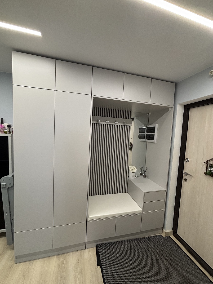 Отличный шкаф, конечно как всегда плюс что можно по своим размерам заказать. В коридоре встал как влитой.