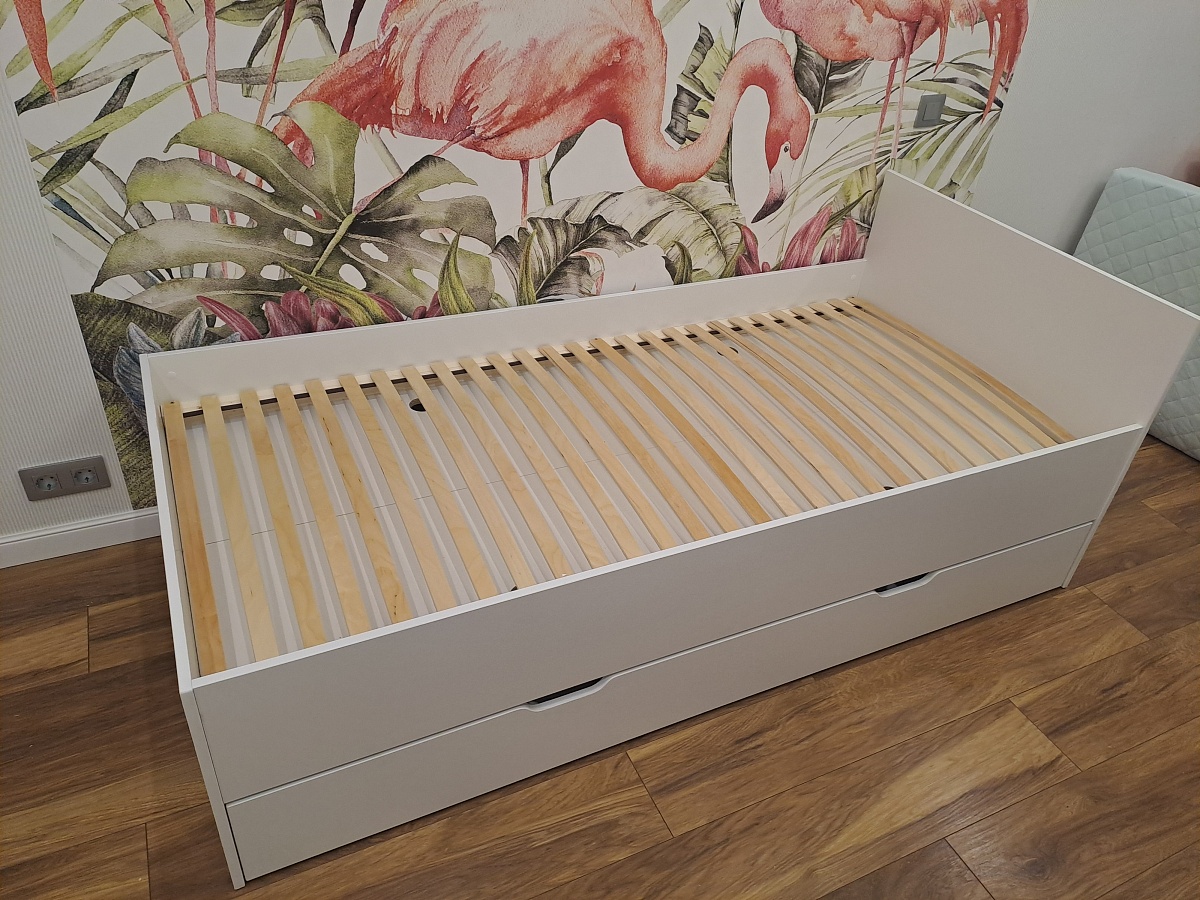 Хорошая кровать.  Огромный плюс, что коеструкцию можно изменить под ваши требования. Конструкторы очень быстро вносят изменения,  и присылают эскизы на согласование. Без проблем дополнил кровать ортопедическим основанием.