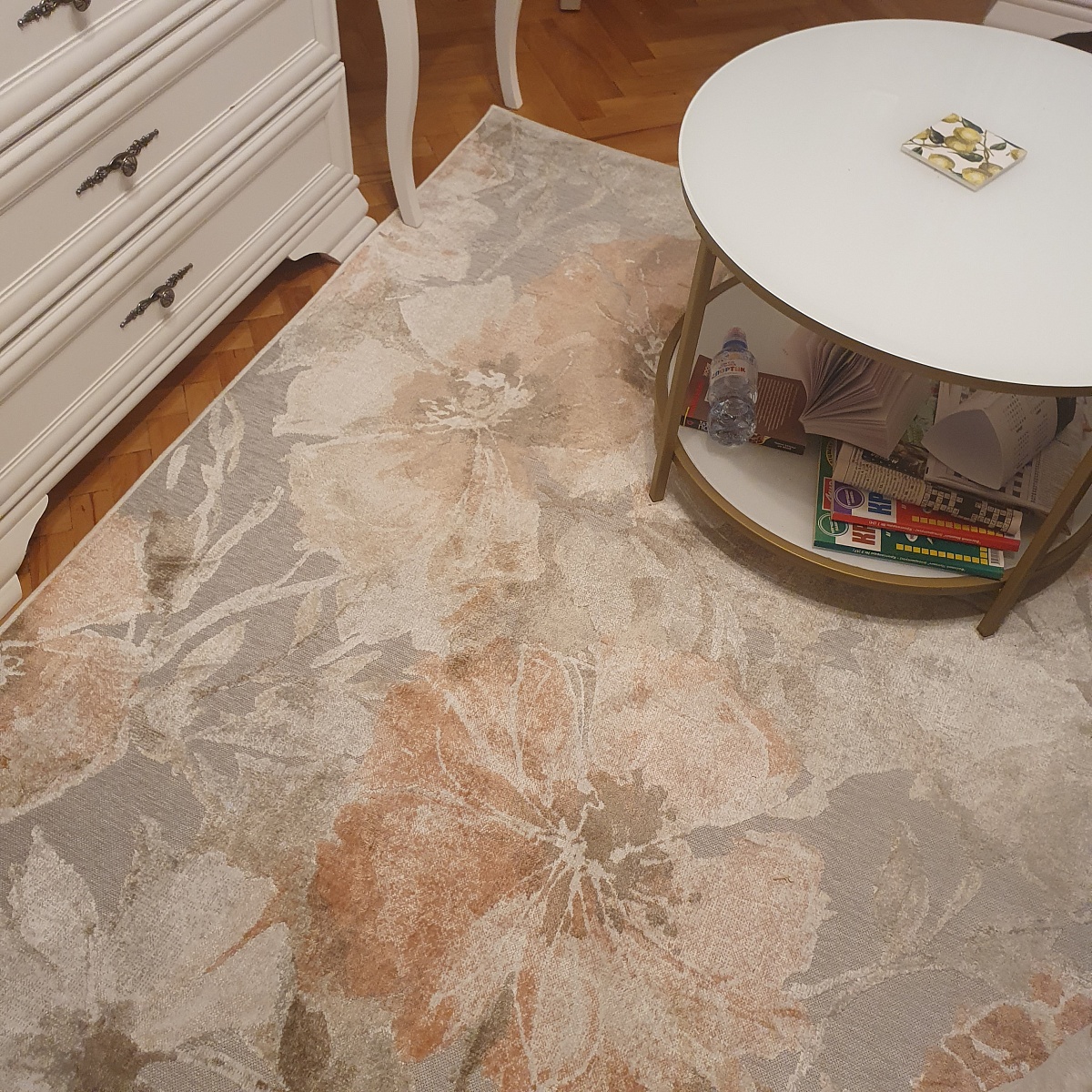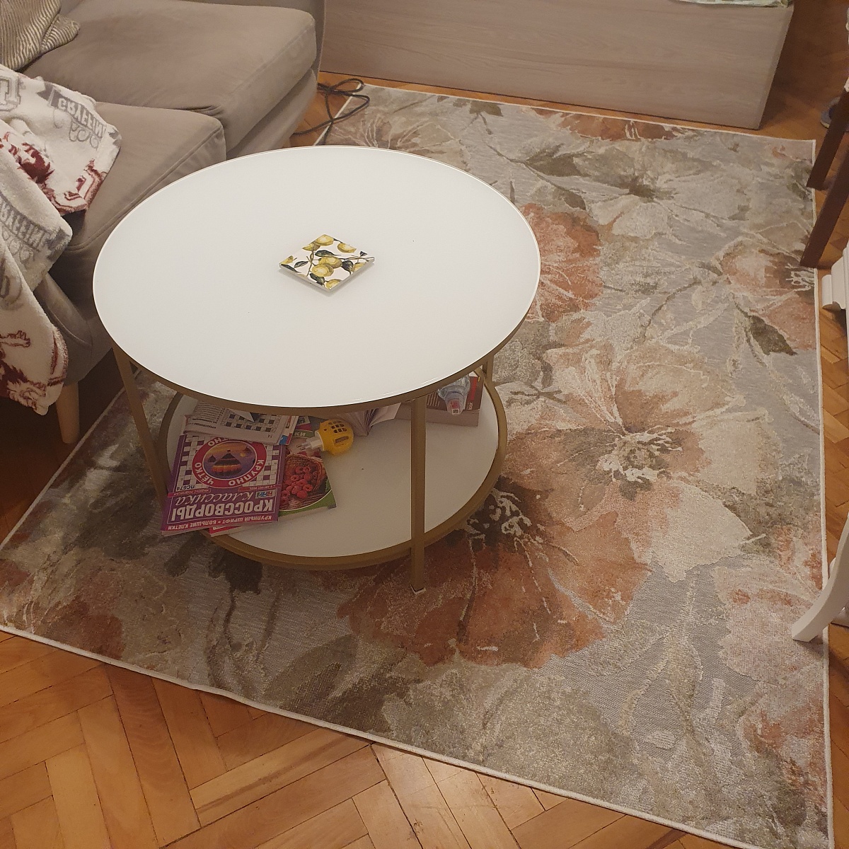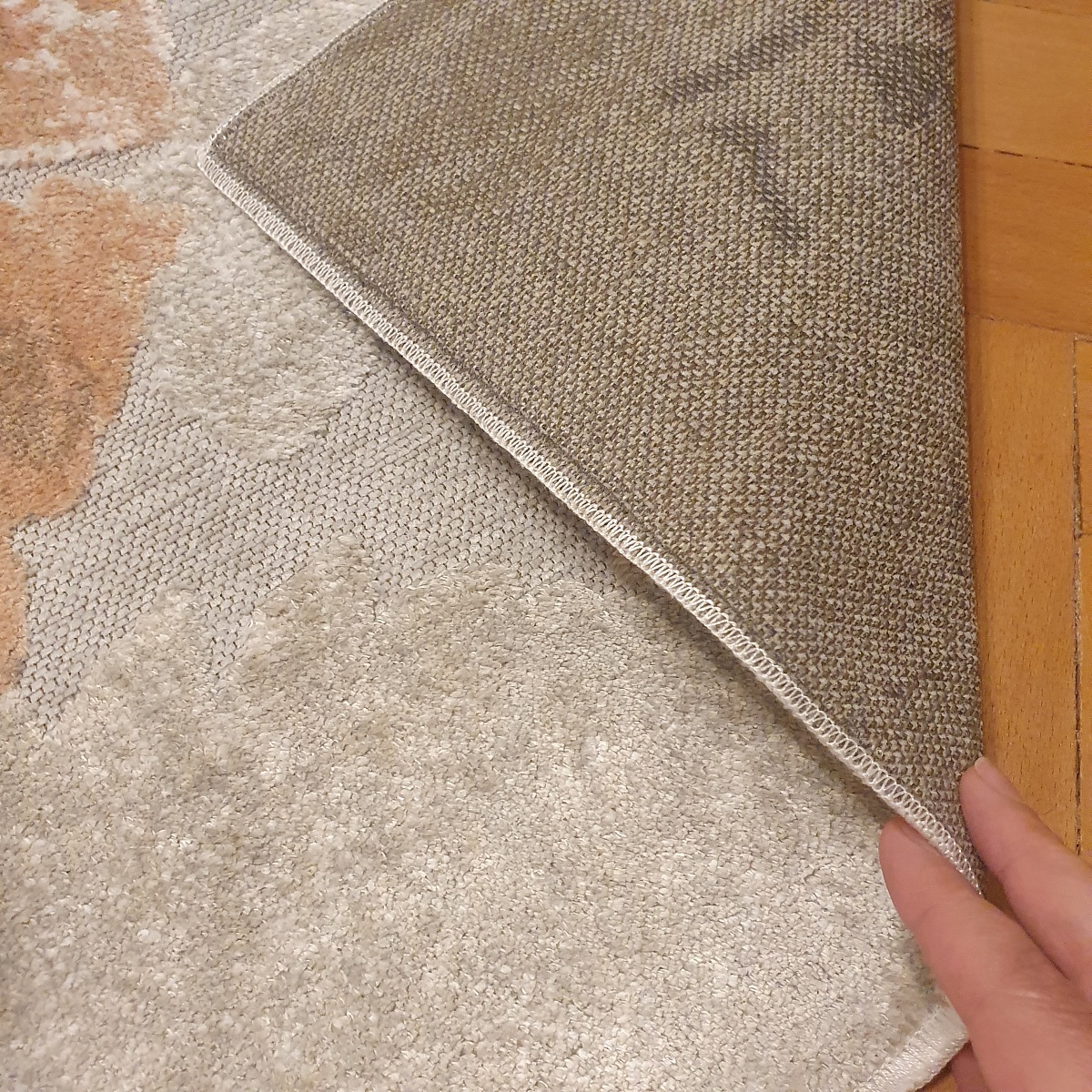 Ковер цена-качество очень удачный. Не яркий, добавляет нежность. На ощупь, голыми ногами, как шелк. Да, он не плотный и толстый, но и не тряпка. То, что нужно. От пола не отходит, не скользит, пылесосится хорошо. Мы довольны покупкой. Покупаои 135 на 195. С белой мебелью и медовым паркетом очень сочетается