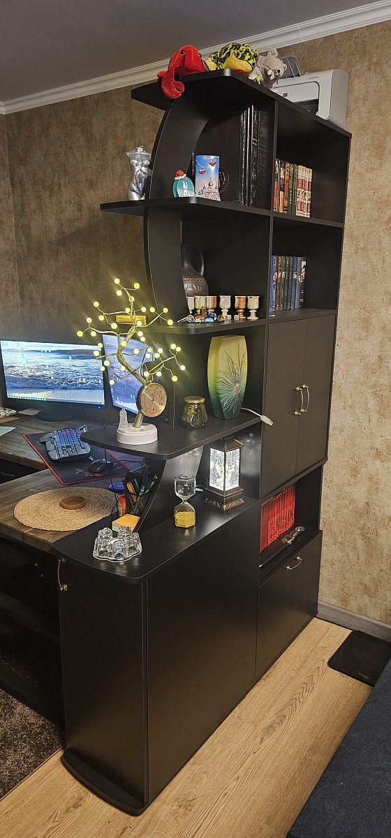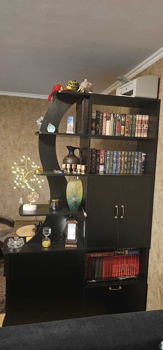 Года два или три, наверное, я всё не решалась заказать себе тумбочку под ТВ. Важно было подобрать размер и тут "о, чудо" это можно сделать!Выбрала я конечно не совсем тумбочку и как потом поняла ещё и не на ножках. Но этот вопрос оказался решаемым))Из минусов заказа:1. Нет на сайте схемы, пришлось расспрашивать по телефону.2. Не точное время доставки.3. Рейтинг товара 5, отзывов нет. Странно.4. При смене фасада с МДФ на ЛДСП что-то сумма меньше не стала)))) 5. Кромка не аккуратно сделана. Что-нибудь придумаю.6. Оказалось не мало деталей со сколами.7. Несколько поврежденных наклеек было тяжело убрать, клей пришлось снимать специальным средством, но хорошо снимались не повреждённые наклейки.Плюсы:1. Возможность сделать по своим размерам. У меня были 1730×600×400. Могла выбрать цвет и комплектацию.2. Несколько раз созванивались с менеджером, обговорили все детали, была выслана схема для утверждения. Моя душа успокоилась.3. Оплата по выбору. Можно и наличными и онлайн. Это здорово!4. Доставка. Ребята молодцы. Хоть нам и сказали другой день))) но они приехали на следующий, сами заехали, нас подождали, всё выгрузили. Вежливые, оставили о себе очень хорошее впечатление. 5. Есть схема сборки. Каждая деталь промаркерована и это очень удобно.6. Собирать легко. Собирали вдвоём с дочкой. Мы любители головой подумать и руками поработать))) Так что нам как игра была собрать этот комод-тумбу. Но было бы всё не так радужно, если бы не было всё вымерено чётко и правильно. Собралось всё без всяких погрешностей! Благодарю тех, кто воплощал в жизнь этот проект. Всё отлично получилось. Прикрепляю фото нашей совместной с вами работы. Удачи вам!