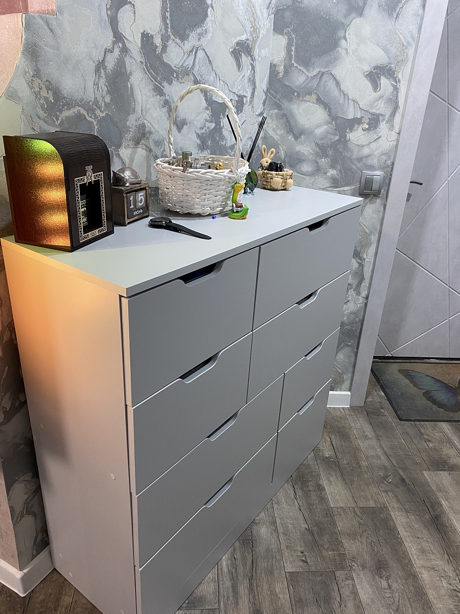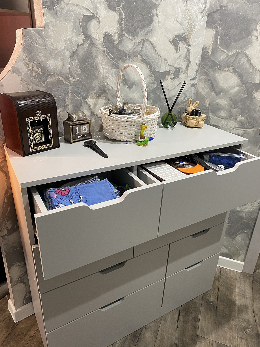 Хочу оставить отзыв о данном комоде. Заказывали через сайт с доставкой дома в феврале 2025 года. Комод искали очень долго, так как нигде именно серого цвета не было, сколько магазинов и сайтов не пересмотрела, еще что очень нравится в данном магазине, что можно подогнать мебель по своим размерам, что мы и сделали с комодом) Комод идеально подошел по цвету к гардеробной, просто один в один. Сам комод очень красивый, вместительный и функциональный. Доставка была осуществлена во время. Все комплектующие к комоду были в наличии. Очень довольна покупкой данного комода. Спасибо большое «Бестмебель»! Вернемся к вам, еще и не раз!