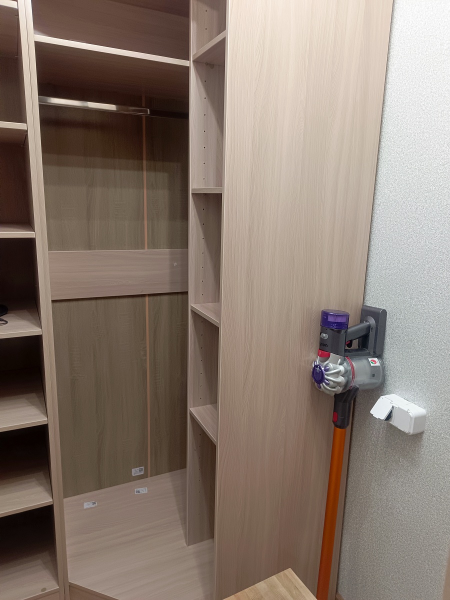Угловой шкаф без двери брали в гардеробную. Собирал сам.  Удобно, функционально.